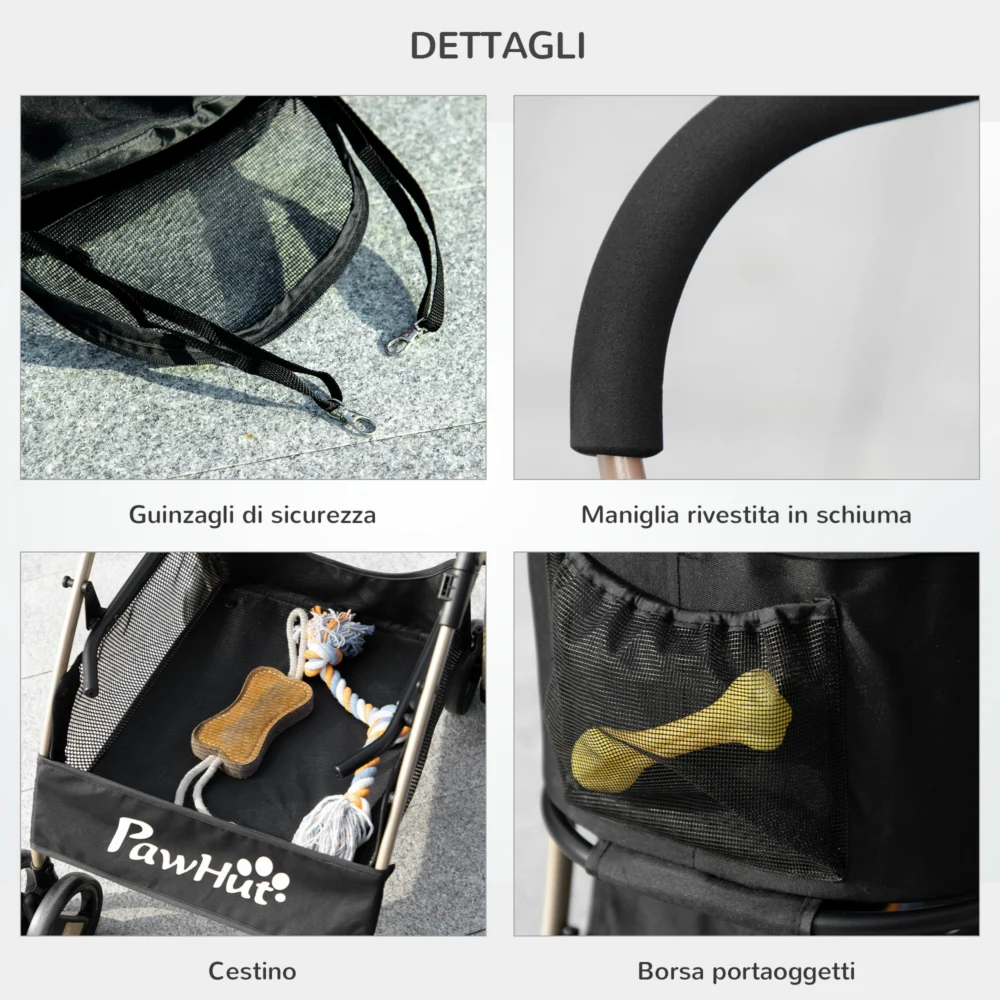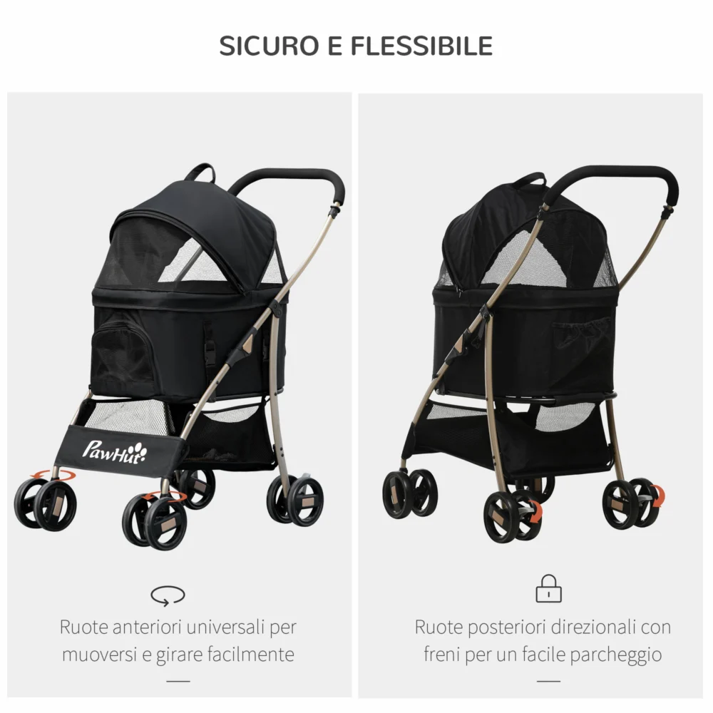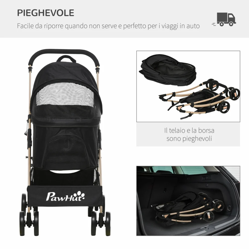 PawHut Πτυσσόμενο καρότσι σκύλου με αποσπώμενη θήκη και κουβούκλιο, 82×49,5x98cm, Μαύρο D00-166V00BK