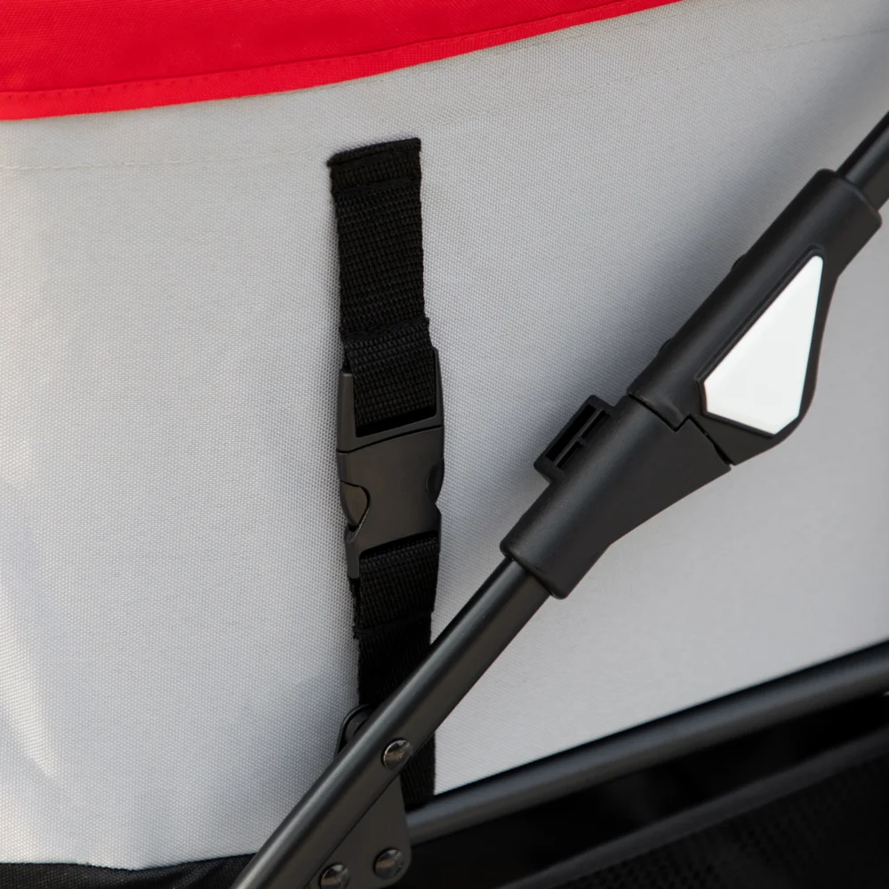 Το αναδιπλούμενο πλαίσιο, σας επιτρέπει να το αποθηκεύετε εύκολα σε μια γωνία ή να το τοποθετείτε στο πορτ-μπαγκάζ του αυτοκινήτου. Το κάτω καλάθι σας δίνει χώρο για να αποθηκεύσετε αξεσουάρ για το κατοικίδιό σας και τα υπάρχοντά σας. Οι 2 τροχοί από υλικό EVA με διάμετρο 13.5 cm με φρένο και οι 2 περιστρεφόμενοι μπροστινοί τροχοί εξασφαλίζουν ασφαλή και ομαλή ολίσθηση σε διαφορετικά εδάφη. Διαθέτει επίσης 2 εσωτερικά λουριά για να τα στερεώσετε στο κολάρο ή στο λουρί των κατοικίδιων σας για να μην πηδήξουν έξω.