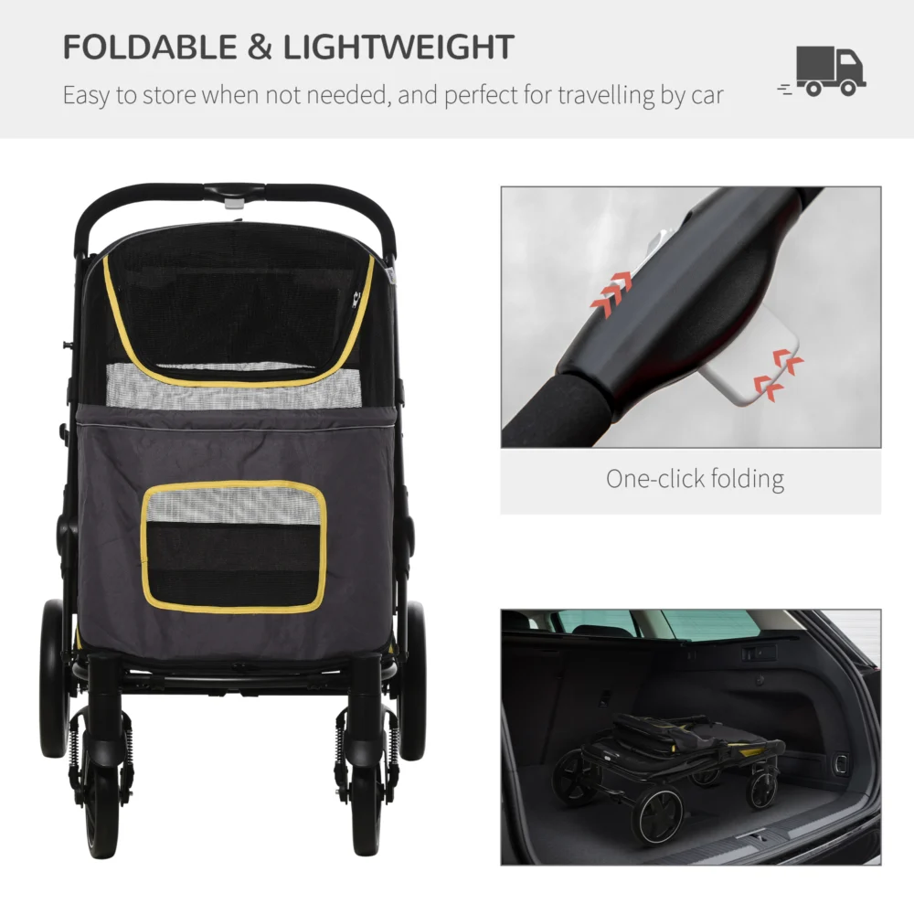 PawHut Πτυσσόμενο καρότσι σκύλου για μεσαίου μεγέθους σκύλους από ατσάλι και ύφασμα Oxford με εισόδους με φερμουάρ και δίχτυα παράθυρα, 112x65x100 cm D00-167V00CG