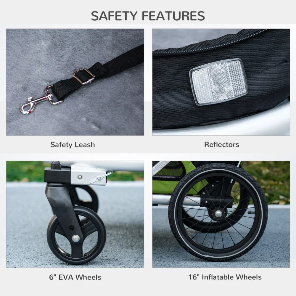 PawHut 2 σε 1 αναδιπλούμενο ρυμουλκούμενο ποδηλάτου και καρότσι σκύλου με ανακλαστήρες και σημαία, πράσινο D00-186V00GN