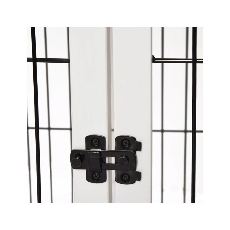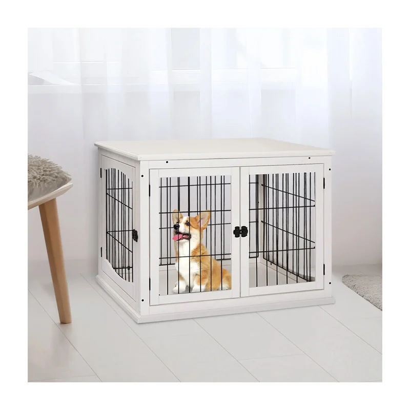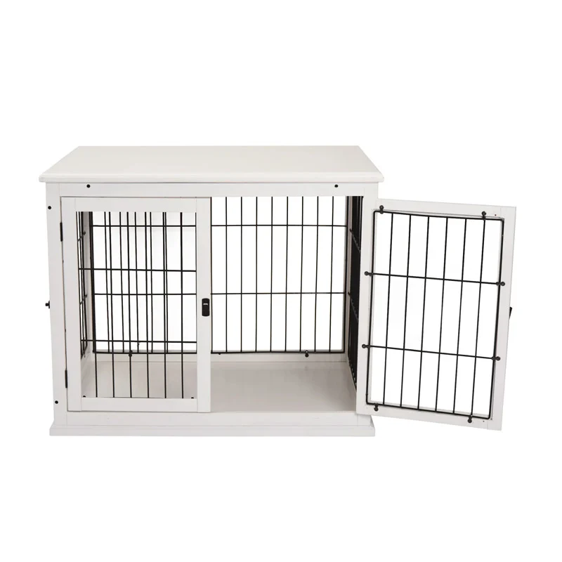 Το κλουβί σκύλου από την εταιρεία PawHut έχει κομψό σχεδιασμό και είναι κατασκευασμένο από ανθεκτικό ξύλο MDF και μέταλλο. Διαθέτει μια διπλή μπροστινή πόρτα και μια μονή πλευρική, για να επιτρέπει εύκολη πρόσβαση στο κατοικίδιο σας, ο οποίες και οι δυο κλείνουν με μάνταλο για μεγαλύτερη ασφάλεια. Το εσωτερικό του είναι ευρύχωρο, με ανυψωμένη βάση και επαρκή αερισμό χάρη στο μεταλλικό πλαίσιο. Καθαρίζεται εύκολα και έχει εύκολη συναρμολόγηση.