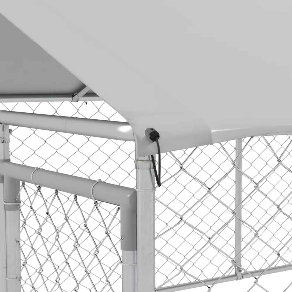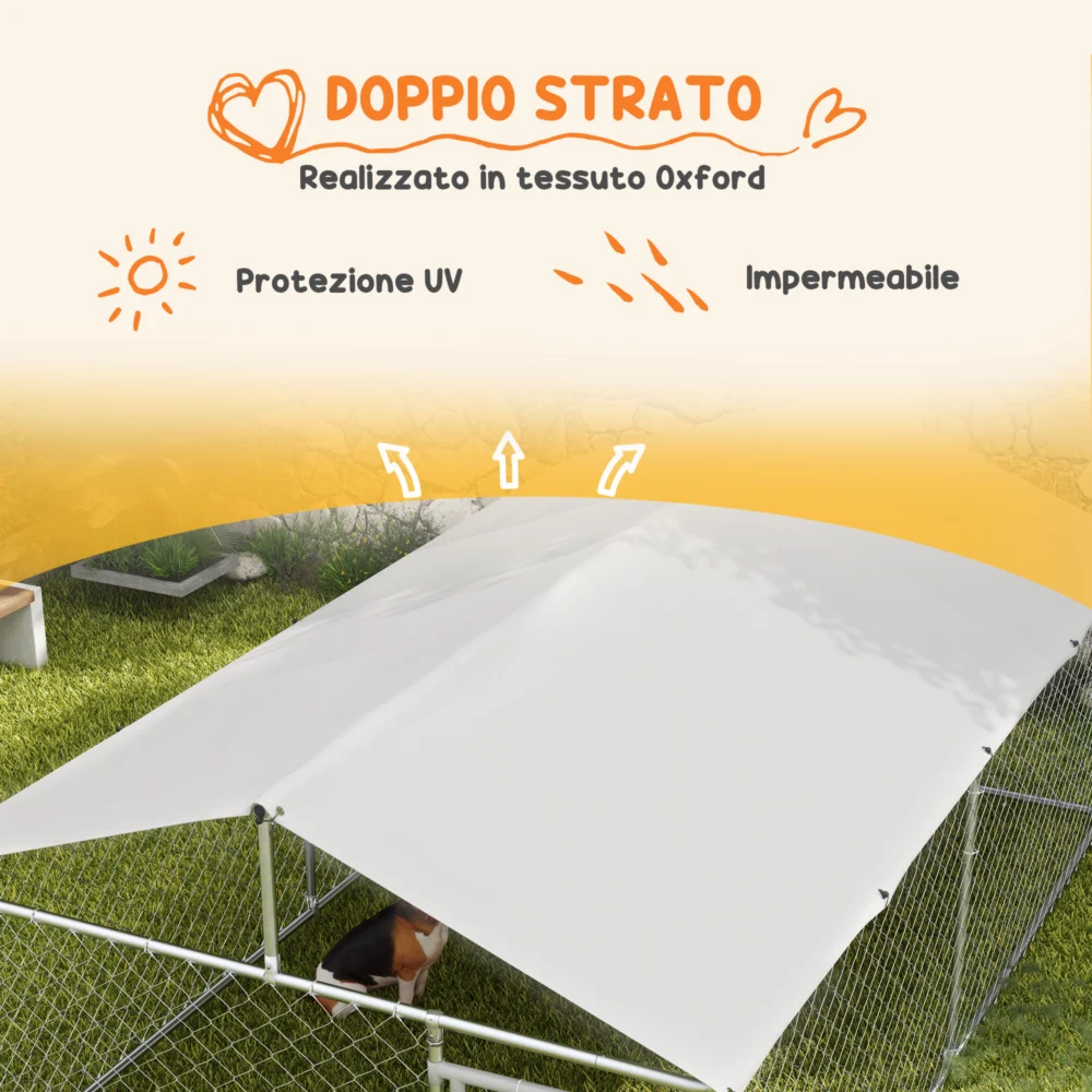 PawHut Outdoor Run για μεγάλα σκυλιά έως 30 κιλά, με αδιάβροχη και αντι-UV οροφή, 4×2,3×1,5 m, ασημί D02-179V00SR