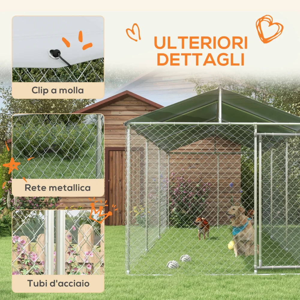 PawHut Outdoor Dog Kennel με αδιάβροχη οροφή από ύφασμα και ατσάλι Oxford, 6×2,3×2,3 m, ασήμι D02-179V02SR