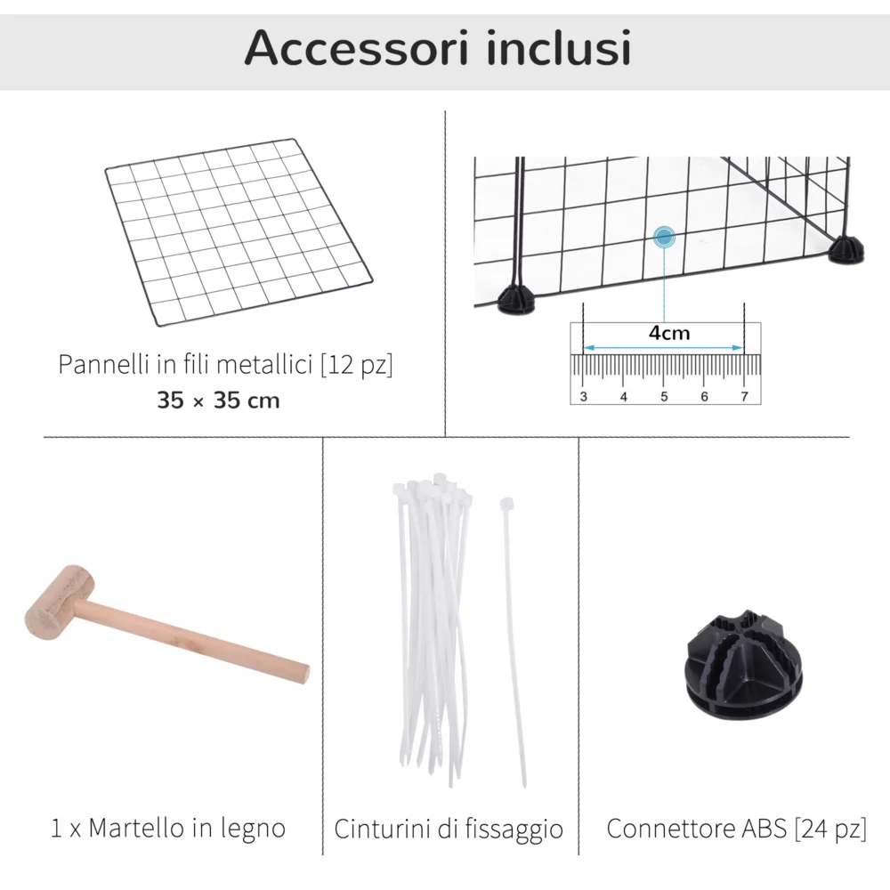 PawHut Modular Περίβλημα για Κατοικίδια Μαύρο 12 Modules 35x35cm D06-055