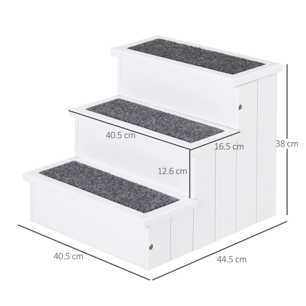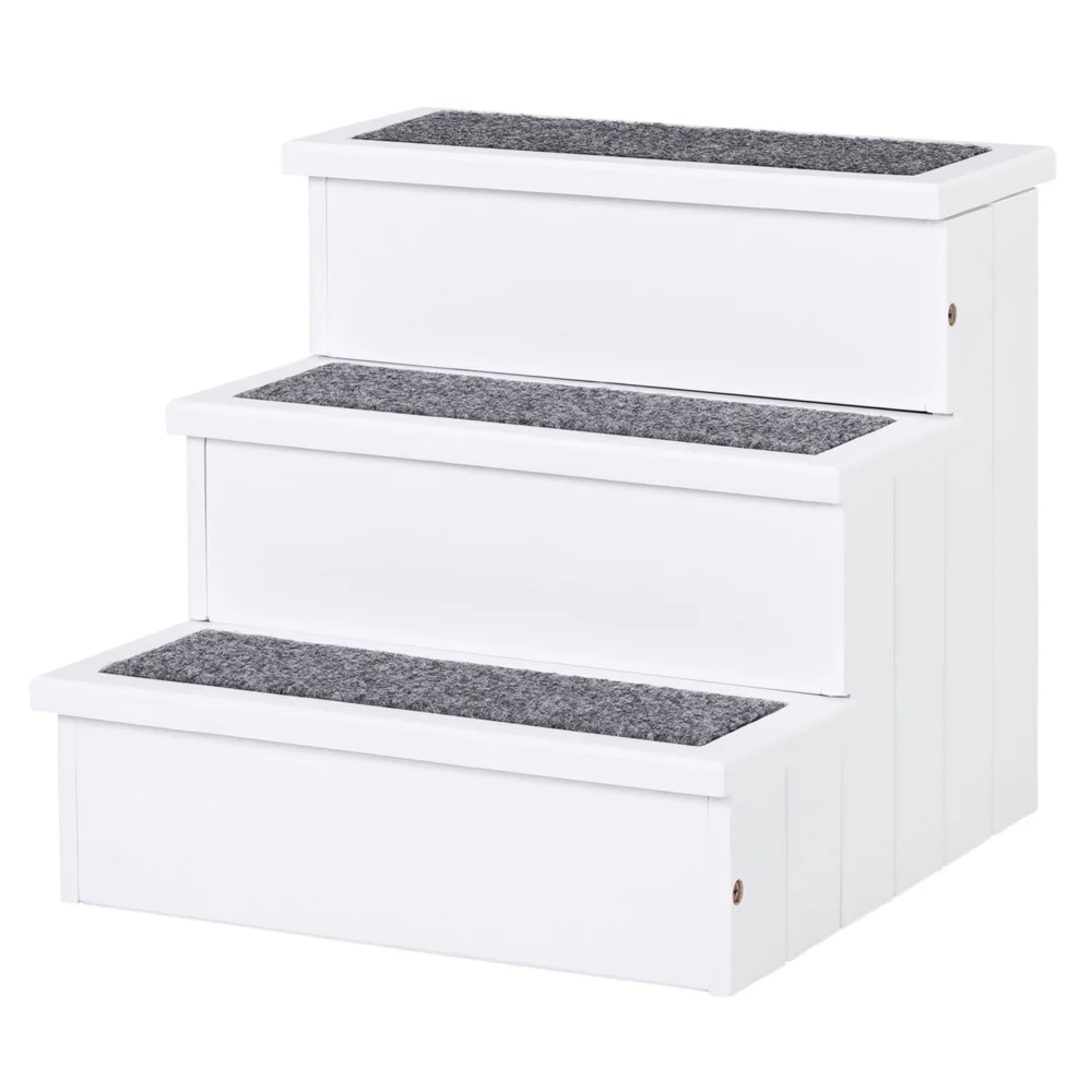 PawHut 3-Step Dog Ladder με αντιολισθητικό χαλάκι και εσωτερικό χώρο, 40,5×44,5x38cm, Λευκό D06-065WT