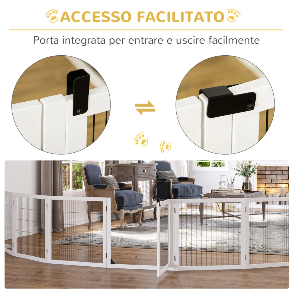 PawHut Gate για σκύλους μικρού/μεσαίου μεγέθους με 6 πτυσσόμενα πάνελ, από ξύλο και ατσάλι, 432x36x70 cm, λευκό D06-118WT