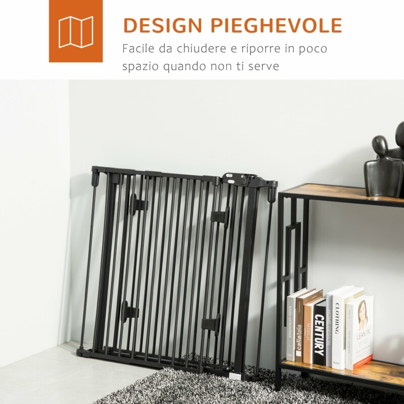 Πτυσσόμενη ατσάλινη πύλη ασφαλείας PawHut, φράγμα σκύλου με σύστημα αυτόματου κλεισίματος και κλειδώματος – Μαύρο D06-125BK