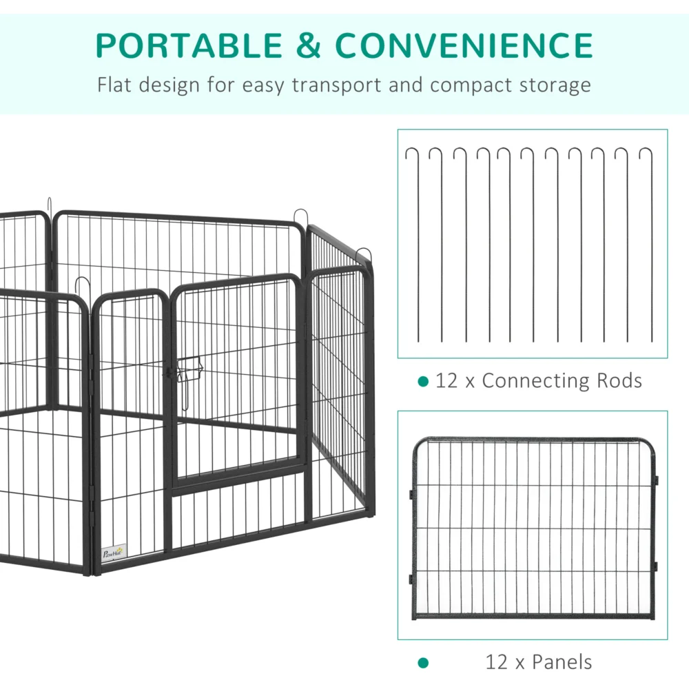 Περίβλημα PawHut για σκύλους και κατοικίδια με 12 αρθρωτά χαλύβδινα πάνελ και 2 εισόδους, 80×1,5x60cm, Μαύρο D06-141