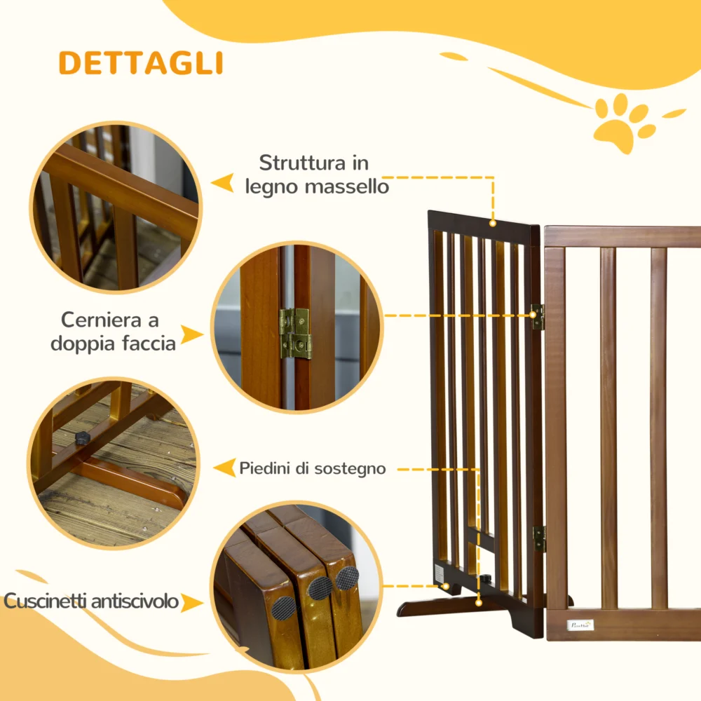PawHut Πτυσσόμενη πύλη σκύλου με 3 πάνελ με αντιολισθητικά πόδια για διάδρομους, σκάλες και σαλόνια, πεύκο, 181x35x76 cm, σκούρο καφέ D06-152V01CF