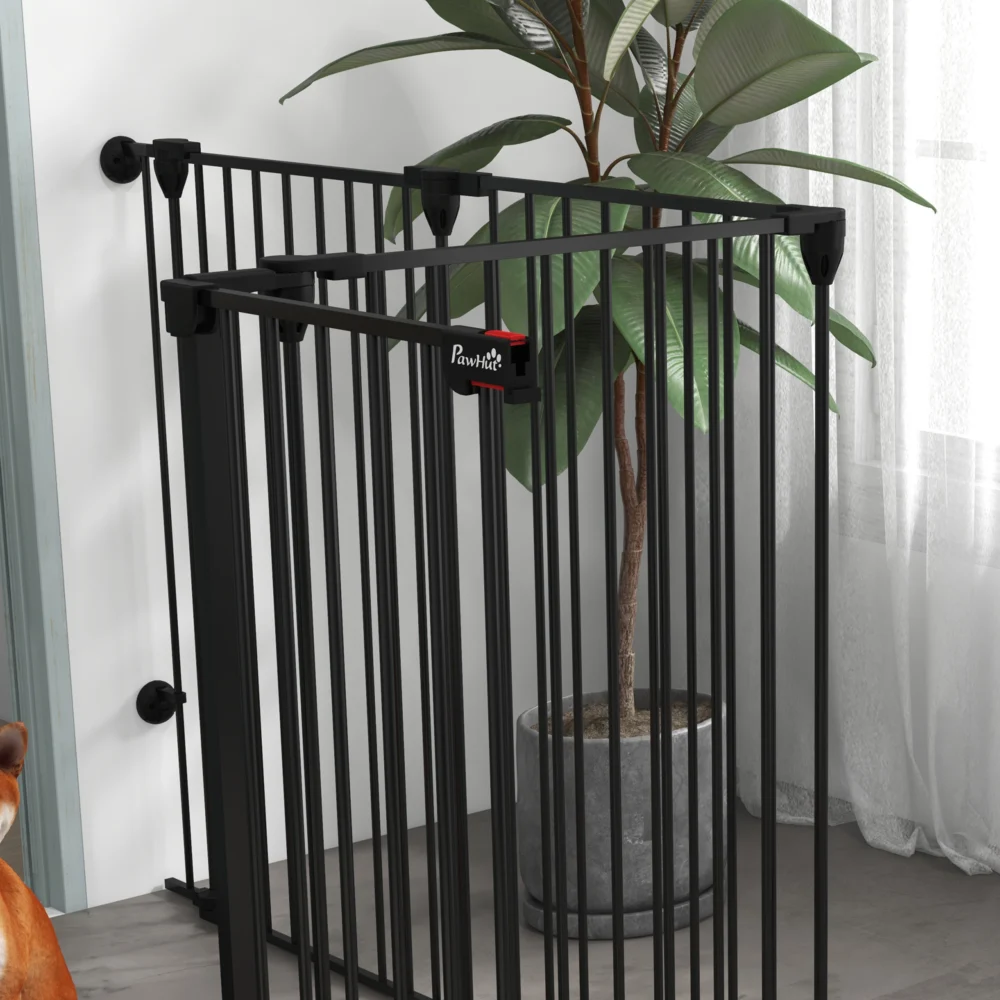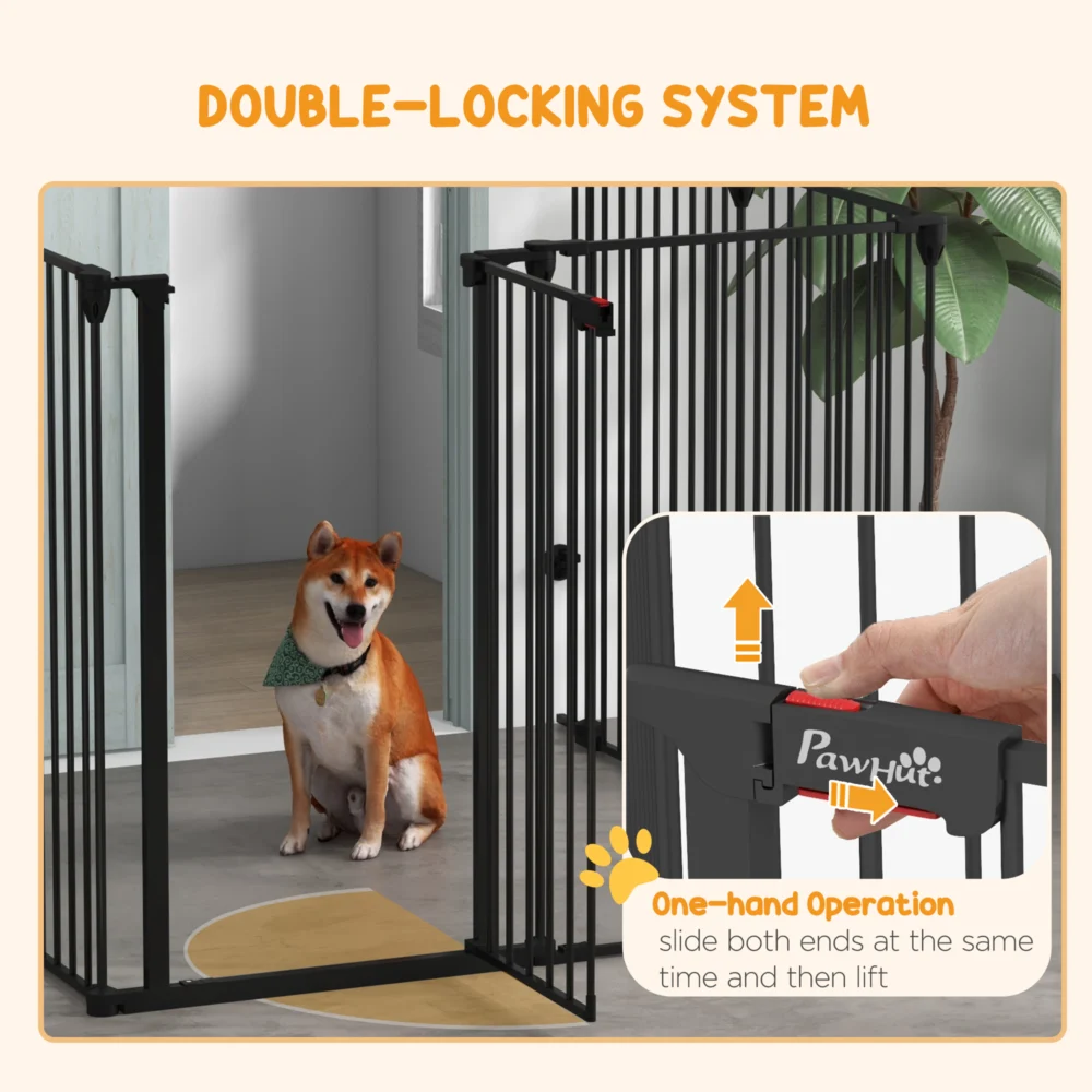 PawHut Πτυσσόμενη πύλη σκυλιών 6 πάνελ για σκύλους μεσαίου μεγέθους, κατασκευασμένη από ατσάλι και πλαστικό, 123x102x100 cm, Μαύρο D06-187V00BK