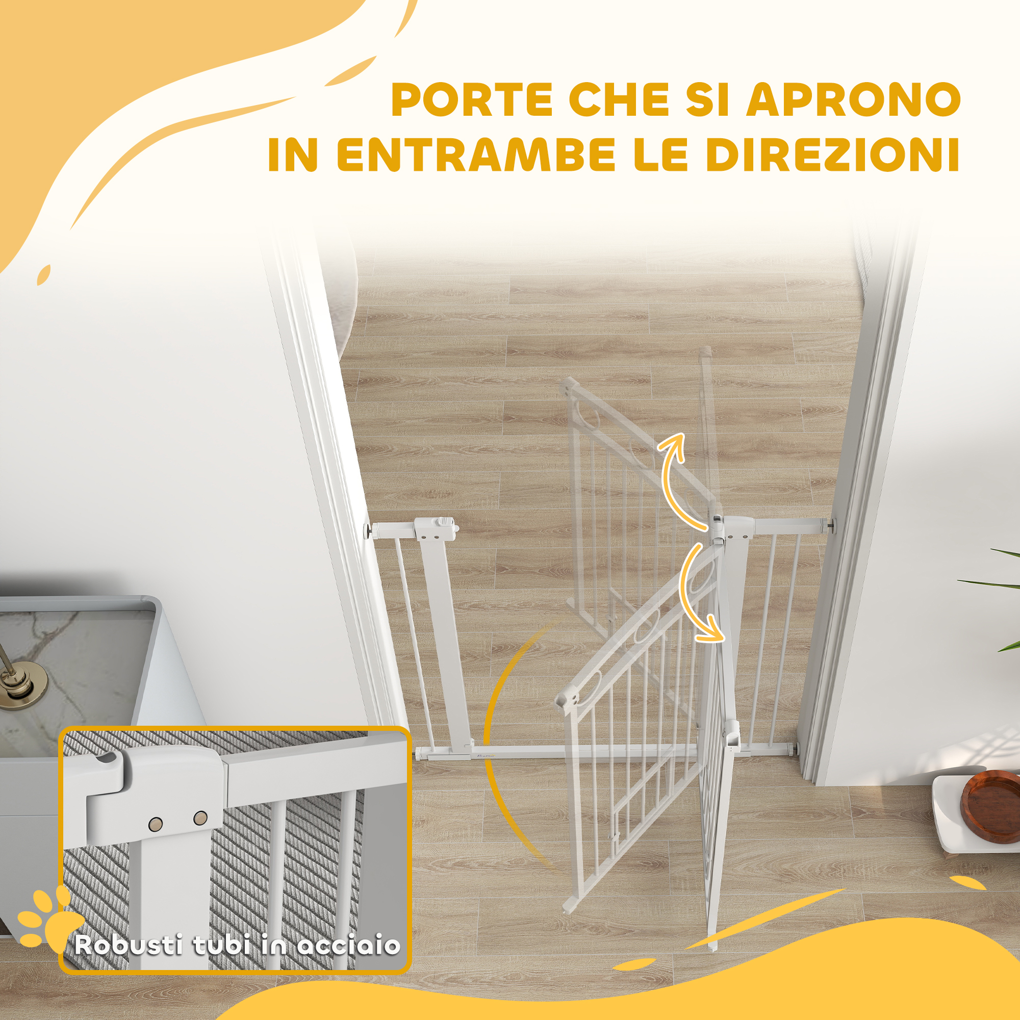 Το κάγκελο PawHut είναι ιδανικό για την προστασία των τετράποδων φίλων σας. Ρυθμιζόμενο σε πλάτος από 76 έως 104 cm, προσαρμόζεται εύκολα σε διάφορους χώρους, από σκάλες έως διαδρόμους. Διαθέτει σύστημα διπλού κλειδώματος και πόρτα για γάτες, καθιστώντας το ιδανικό για όσους έχουν περισσότερα από ένα κατοικίδια. Κομψό και πρακτικό, είναι απαραίτητο για κάθε ιδιοκτήτη κατοικιδίων.