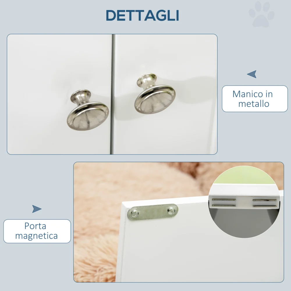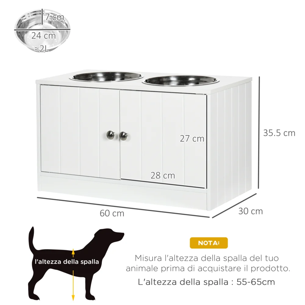PawHut Raised Dog Bowls με Ντουλάπι 44L και 2 Ατσάλινα Μπολ, 60x30x35,5cm, Λευκό D08-040V00WT