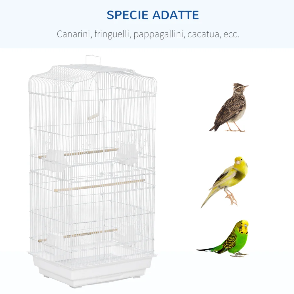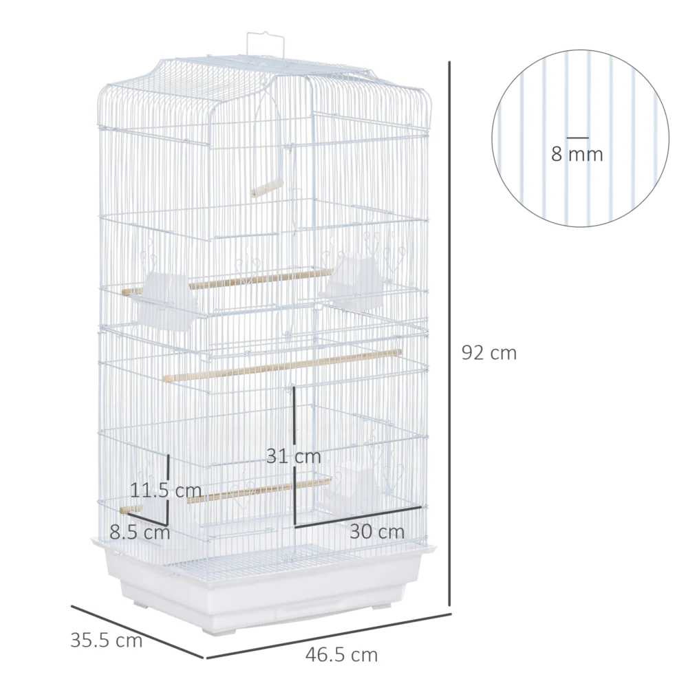 PawHut Bird Cage with Perches, Swing and Bowls, Metal and Plastic Aviary, 46,5×35,5x92cm, Λευκό D10-018V01WT