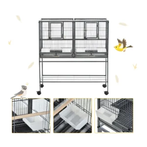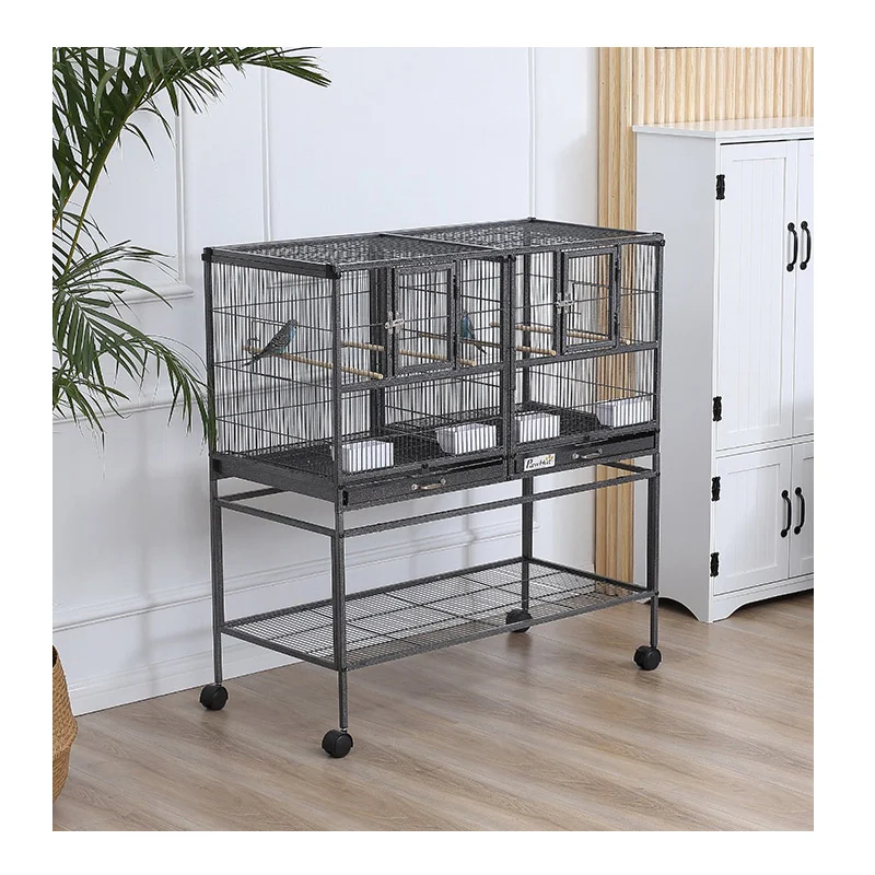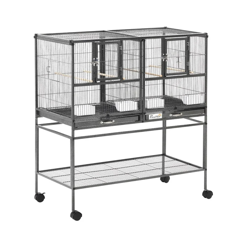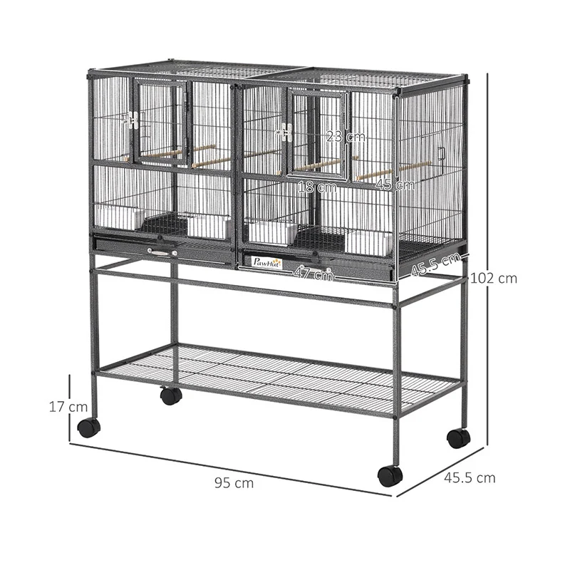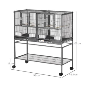 Διπλό Μεταλλικό Τροχήλατο Κλουβί Πτηνών 95 x 45.5 x 102 cm PawHut D10-052