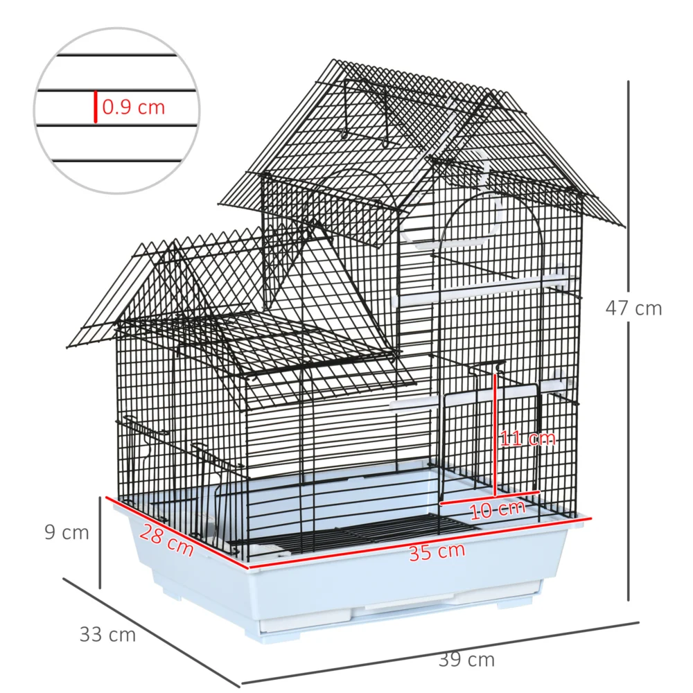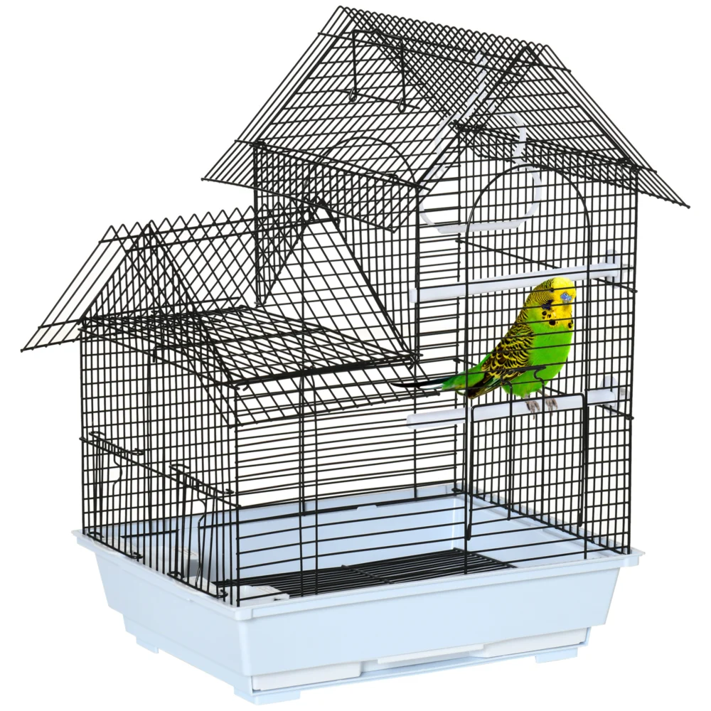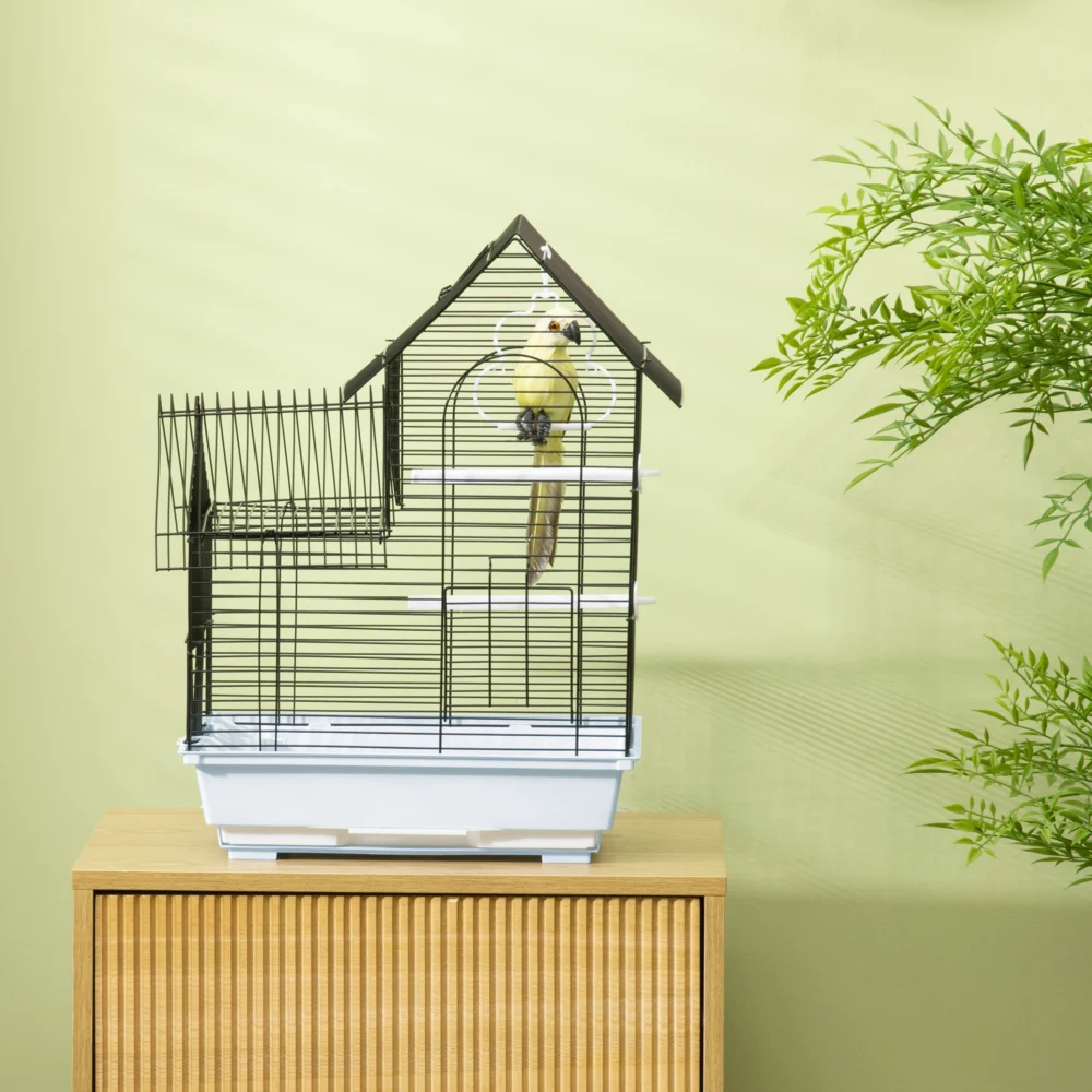 PawHut Μεταλλικό Κλουβί πουλιών με χερούλι, αφαιρούμενο δίσκο, μανταλάκια και κούνια, 39x33x47cm, λευκό D10-063V01WT