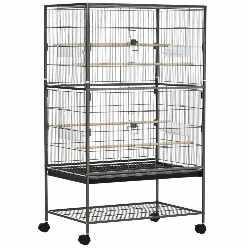 PawHut Indoor Ξύλινο Κλουβί πουλιών με Δίσκο, 4 Ρόδες και Πέρκα, 78x52x132cm D10-075CG