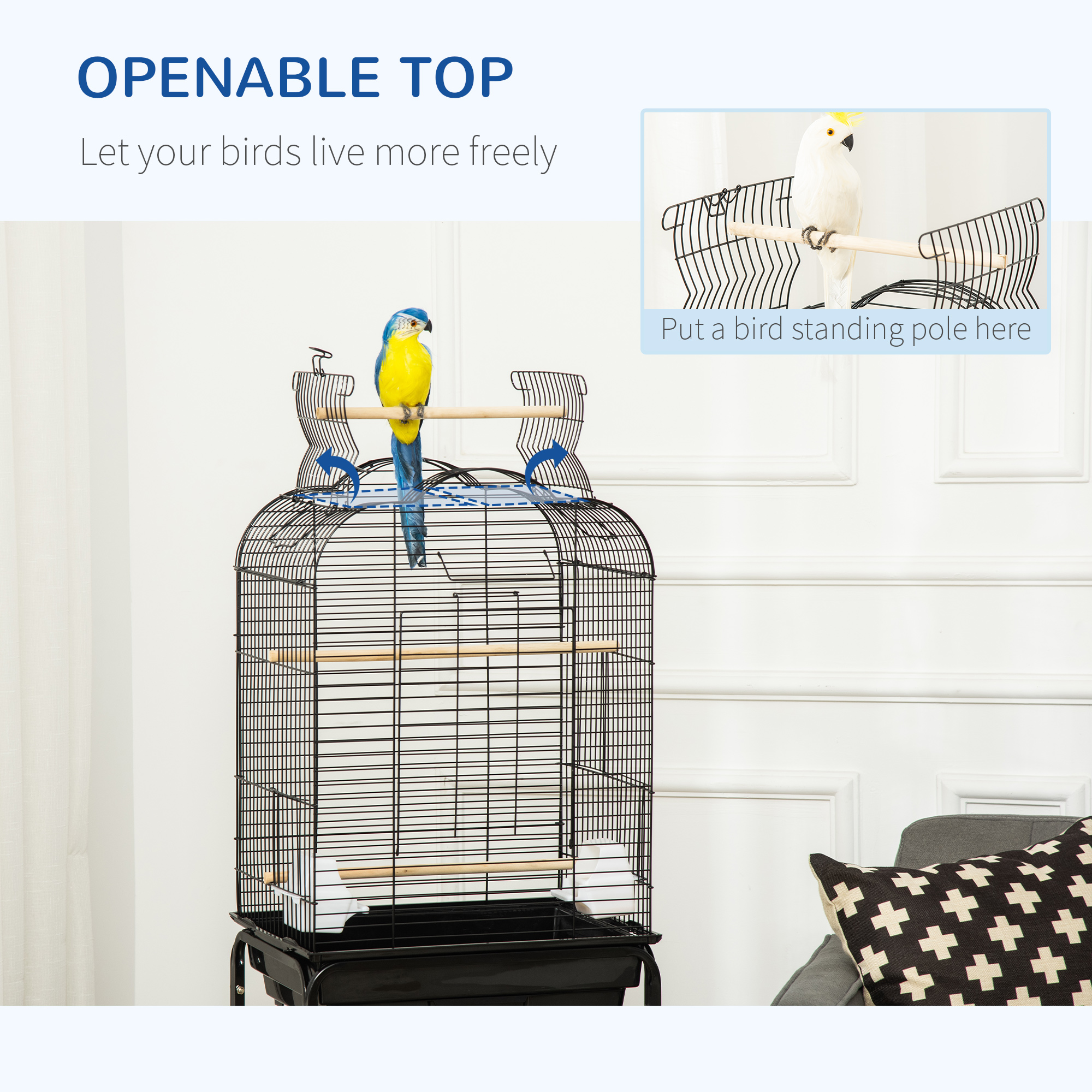 PawHut Bird Cage με 3 κούρνιες, 2 μπολ και 2 πλαϊνές πόρτες, σε ατσάλι, PP και ξύλο, 46x36x130 cm, Μαύρο D10-077
