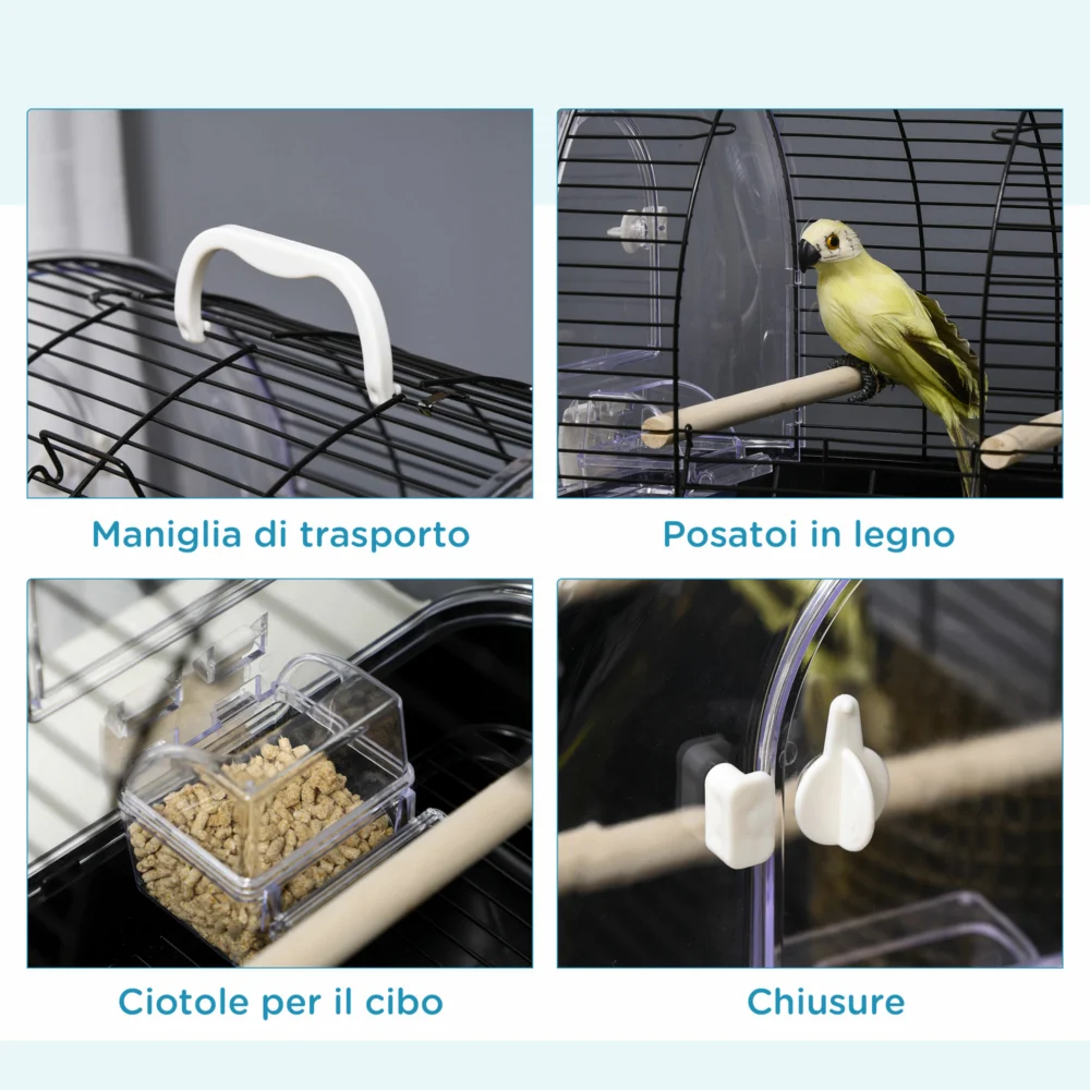 PawHut Steel Bird Cage with Perches, Αφαιρούμενος Δίσκος και Λαβή, 42x32x37 cm, Μαύρο D10-088V00BK