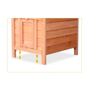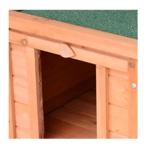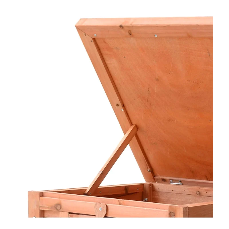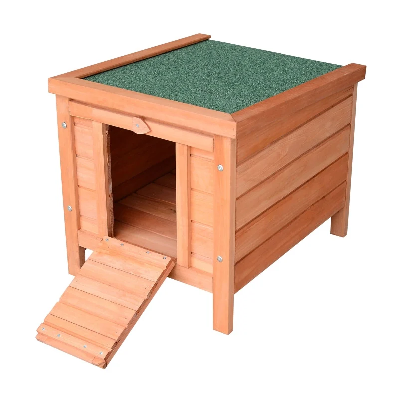 To κλουβί εξωτερικού χώρου – σπίτι μικρών ζώων, από την εταιρία PawHut, είναι κατασκευασμένο από πλήρως επεξεργασμένο και αυλακωτό ξύλο ελάτου. Η μπροστινή πόρτα ανοίγει σε μια ράμπα για να επιτρέπει στα ζωάκια να ανεβαίνουν ή να κατεβαίνουν εύκολα. Διαθέτει ανοιγόμενη και αδιάβροχη οροφή για προστασία από τη βροχή.