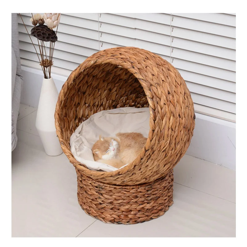 Το πλεκτό καλάθι γάτας από την εταιρεία Pawhut είναι το ιδανικό μέρος για να χαλαρώσει και να ξεκουραστεί το κατοικίδιο σας. Είναι κατασκευασμένο από ανθεκτικό, φυσικό φύλλο μπανανιάς και διαθέτει εσωτερικό σκελετό από μεταλλικό σύρμα για μεγαλύτερη σταθερότητα και ασφάλεια, καθώς και αποσπώμενη βάση η οποία κράτα το κατοικίδιο σας μακριά από την υγρασία του δαπέδου. Επιπλέον διαθέτει μαλακό, βαμβακερό μαξιλάρι στο εσωτερικό του που το καθιστά άνετο και φιλόξενο, ιδανικό για ύπνο.