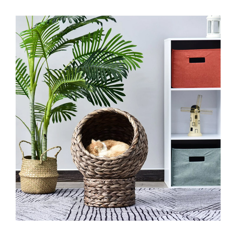 Το πλεκτό καλάθι γάτας από την εταιρεία Pawhut είναι το ιδανικό μέρος για να χαλαρώσει και να ξεκουραστεί το κατοικίδιο σας. Είναι κατασκευασμένο από ανθεκτικό, φυσικό φύλλο μπανανιάς και διαθέτει εσωτερικό σκελετό από μεταλλικό σύρμα για μεγαλύτερη σταθερότητα και ασφάλεια, καθώς και αποσπώμενη βάση η οποία κράτα το κατοικίδιο σας μακριά από την υγρασία του δαπέδου. Επιπλέον διαθέτει μαλακό, βαμβακερό μαξιλάρι στο εσωτερικό του που το καθιστά άνετο και φιλόξενο, ιδανικό για ύπνο.