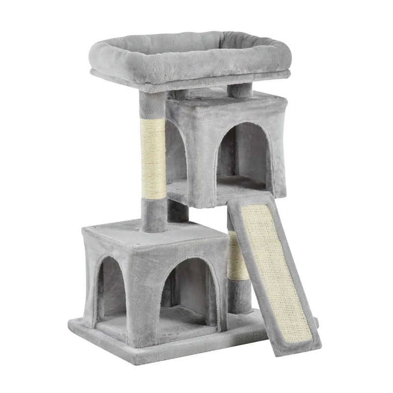 To δέντρο γάτας – ονυχοδρόμιο, από την εταιρία PawHut, αποτελεί ιδανική επιλογή για την καλή υγεία και την ευεξία της γάτας. Ο σκελετός του είναι κατασκευασμένος από μοριοσανίδες, εξασφαλίζοντας μια αξιόπιστη δομή και διαθέτει πλατφόρμα με σχοινί σιζάλ για το ξύσιμο των νυχιών, δύο σπιτάκια, μεγάλη κορυφή με μαξιλάρι, ενώ οι πόλοι του καλύπτονται επίσης με σχοινί σιζάλ. Το βελούδινο κάλυμμα καθιστά το δέντρο απαλό και ασφαλές για το κατοικίδιο ζώο σας.