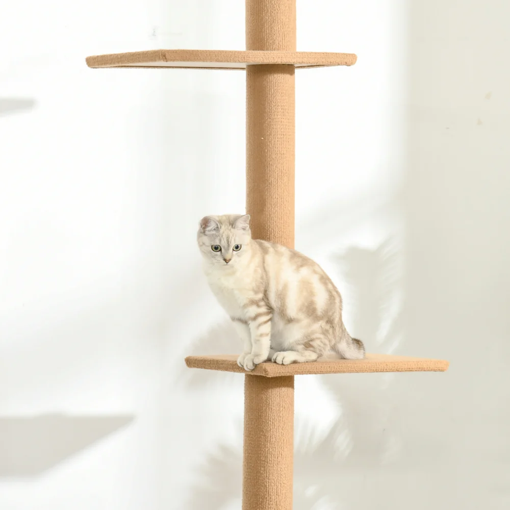 PawHut 4-Level Cat Scratching Post Tree, Ρυθμιζόμενη στερέωση οροφής, 43x27x228-260cm D30-296V02BN