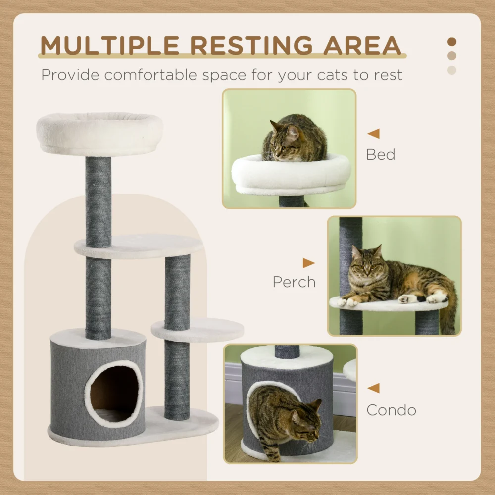 PawHut Cat Tree με κρεβάτι, σπίτι και στύλο, 55,5×30,5×98 cm, λευκό D30-621V00WT