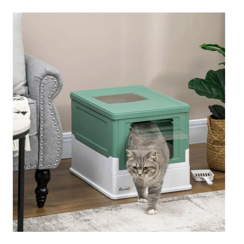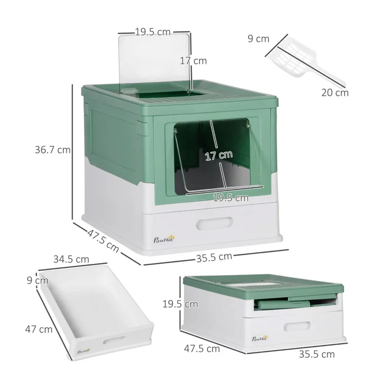 Η τουαλέτα γάτας, από την εταιρία PawHut, είναι το τέλειο αξεσουάρ για εσάς και τη γάτα σας, ειδικά εάν ζείτε σε ένα διαμέρισμα ή έχετε ένα μικρό σπίτι. Είναι κατασκευασμένη από ανθεκτικό και μη τοξικό πλαστικό ABS, ιδανικό για την ευημερία του τετράποδου φίλου σας. Διαθέτει μπροστινή πόρτα για είσοδο και επάνω πόρτα για την έξοδο της γάτας και αφαιρούμενο δίσκο για την άμμο.