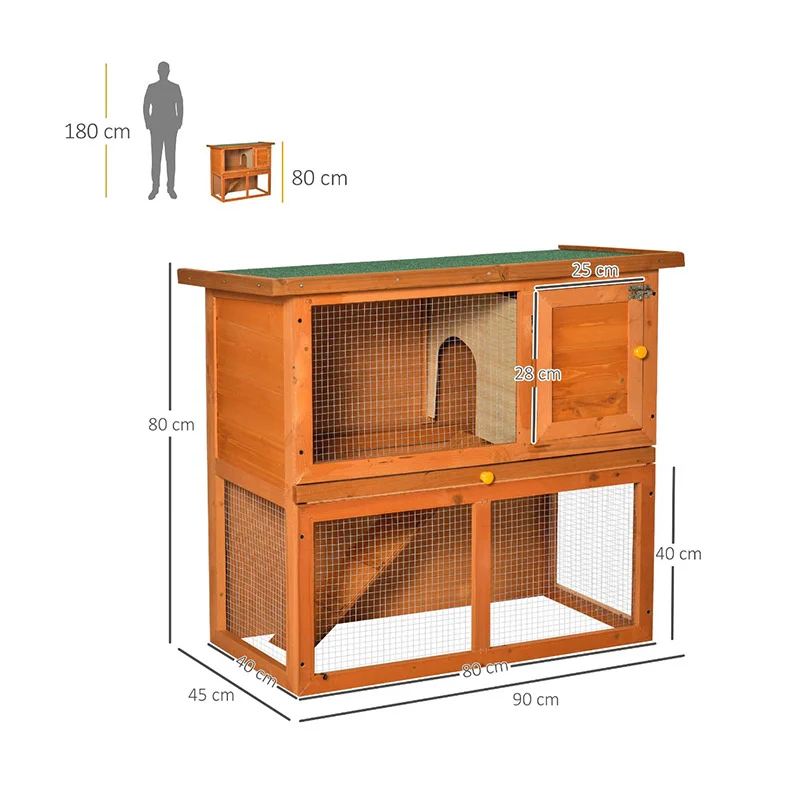 Το κλουβί, από την εταιρία PawHut, έχει σχεδιαστεί για κουνέλια, τσιντσιλά, ινδικά χοιρίδια και άλλα μικρά ζώα. Η δομή του είναι ανυψωμένη για να κρατήσει τα ζωάκια σας μακριά από την υγρασία του εδάφους. Μεγάλο και άνετο, είναι κατασκευασμένο από ξύλο ελάτου με λακαρισμένη επιφάνεια με αδιάβροχη και οικολογική βαφή.