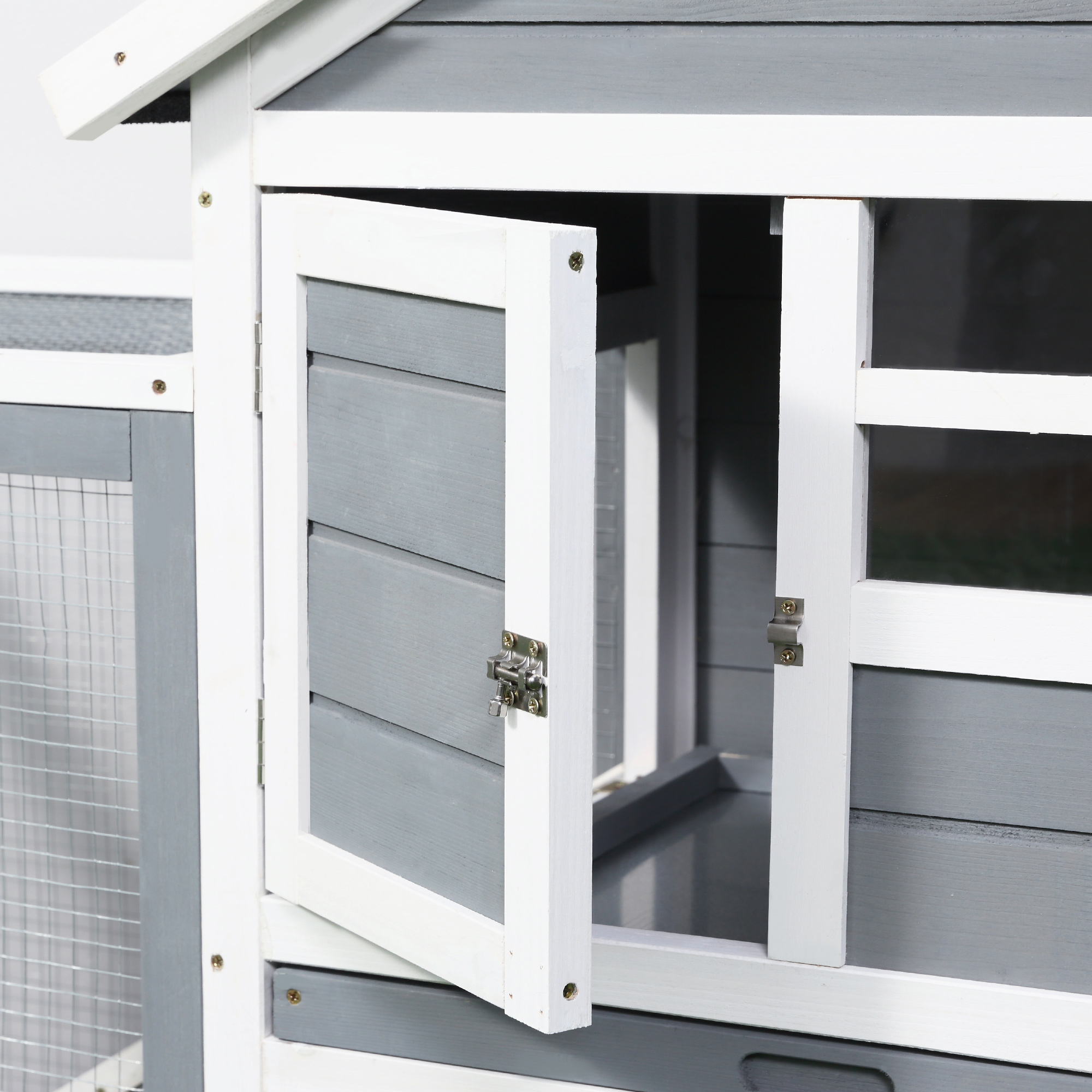 Κλουβί PawHut για κουνέλια, ινδικά χοιρίδια και τρωκτικά εξωτερικού χώρου σε γκρι και λευκό ξύλο 122×62,6×92 cm D51-088GY