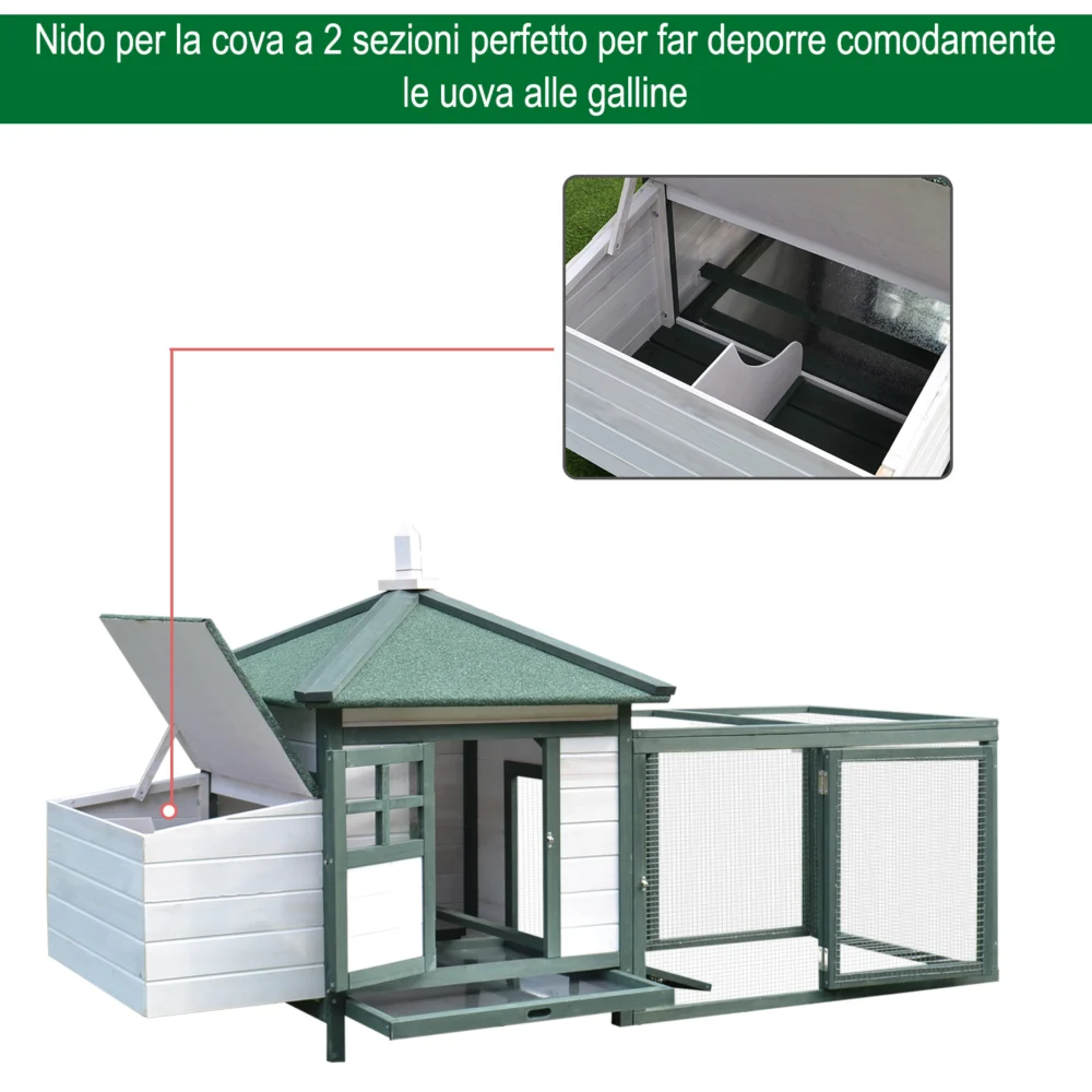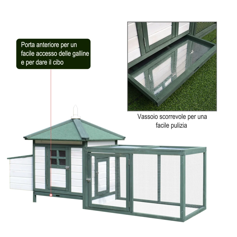PawHut Προκατασκευασμένο Ξύλινο Κοτέτσι Κήπου 196x76x97cm – Λευκό / Πράσινο D51-092GN