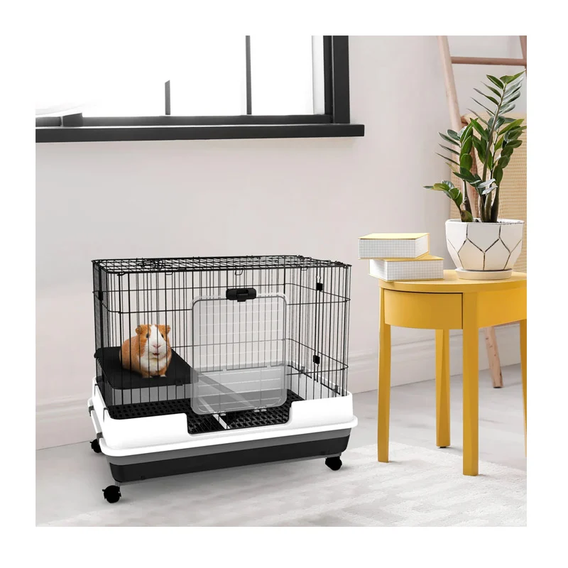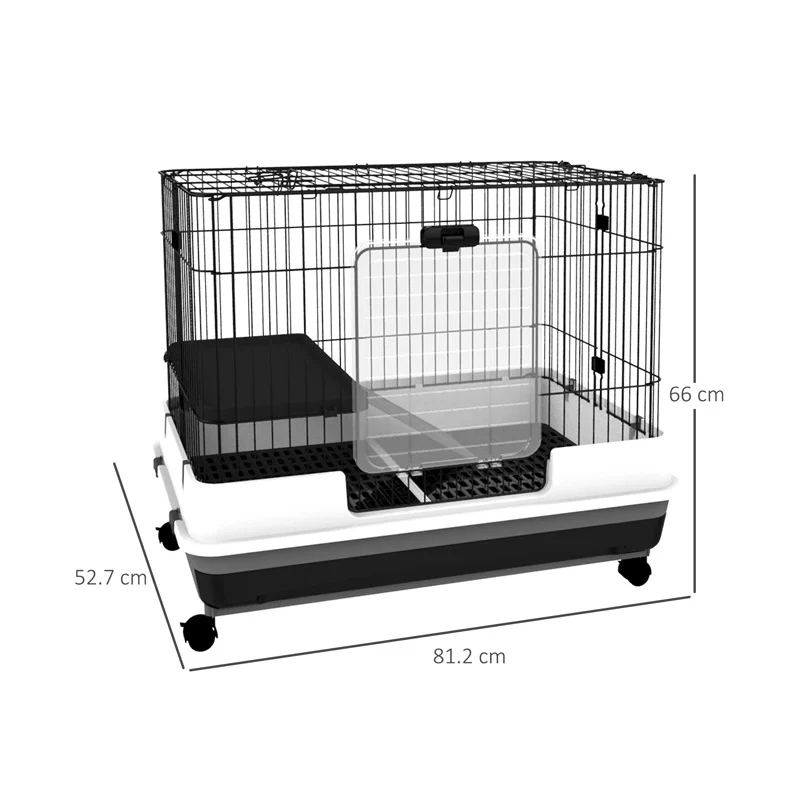 Το κλουβί, από την εταιρία PawHut, είναι το τέλειο σπίτι για μικρά ζώα όπως χάμστερ, κουνέλια και ινδικά χοιρίδια. Το κύριο σώμα του είναι κατασκευασμένο με μεταλλικό σύρμα υψηλής ποιότητας, για μακροχρόνια χρήση. Η απόσταση των ράβδων παρέχει εξαιρετικό εξαερισμό. Διαθέτει ανυψωμένη πλατφόρμα με ράμπα και 2 πόρτες, που επιτρέπουν την εύκολη πρόσβαση στο εσωτερικό του κλουβιού. Έχει βάση σε μορφή πλέγματος και αφαιρούμενο δίσκο που επιτρέπουν τον εύκολο καθαρισμό των απορριμμάτων. Ενσωματώνει 4 τροχούς που του δίνουν εύκολη κίνηση.