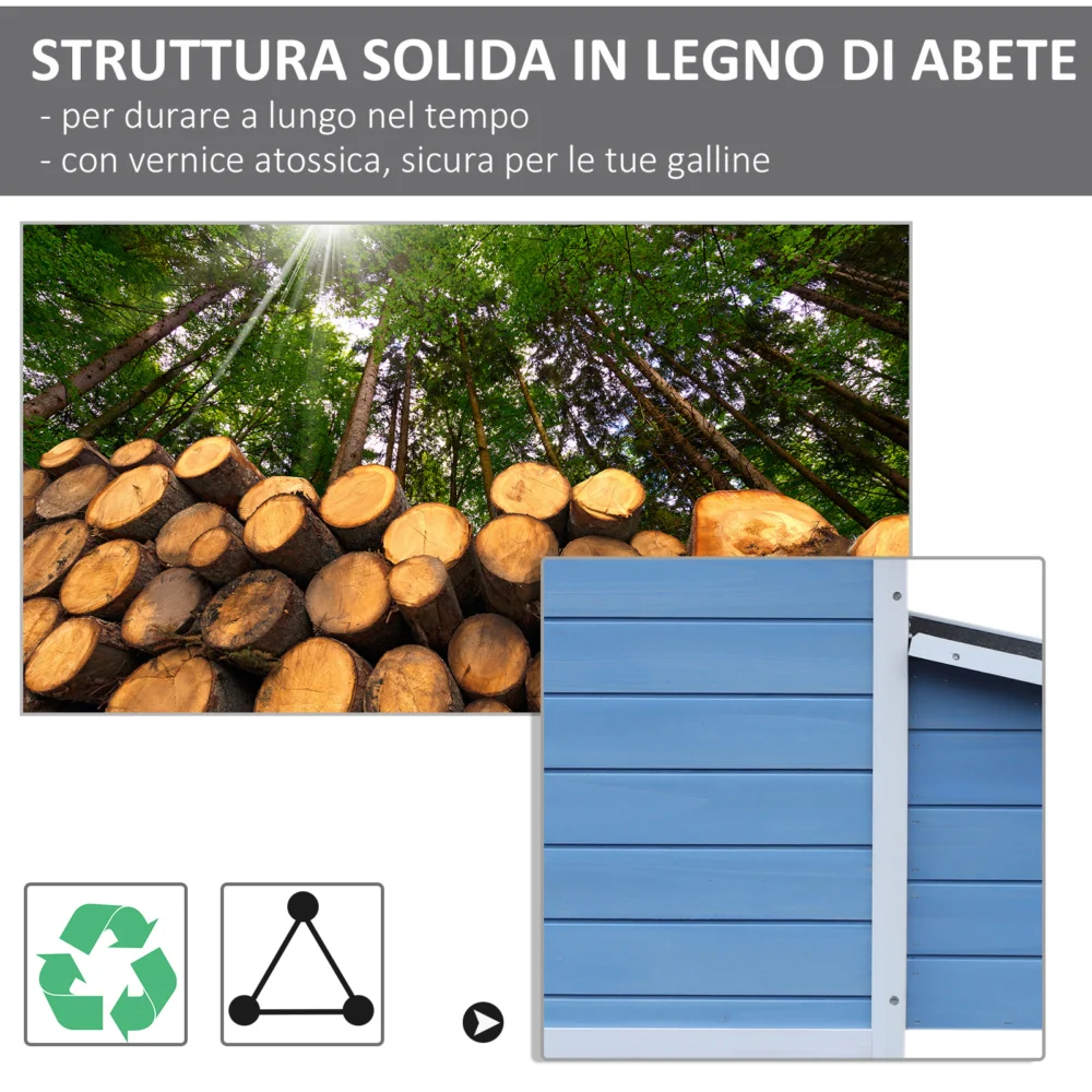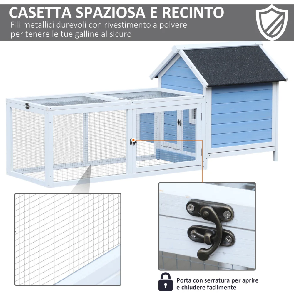 PawHut κοτέτσι με αποσπώμενο ξύλινο δίσκο φωλιάς, λευκό και μπλε, 180×90,1×78,6 cm D51-107