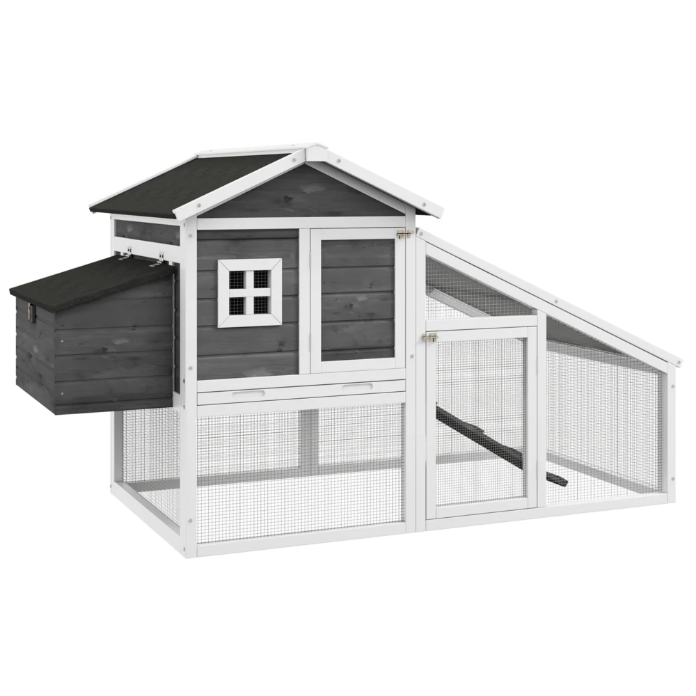 PawHut Κλουβί για κοτόπουλα ή πάπιες, Προκατασκευασμένο Ξύλινο κοτέτσι με αδιάβροχη οροφή, 178x95x100 cm, γκρι D51-135V00GY