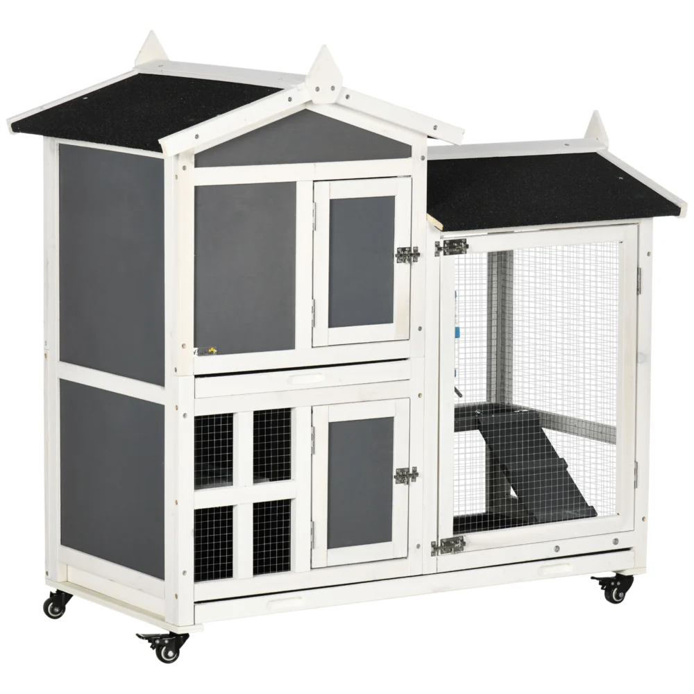 PawHut Εξωτερική Ξύλινη Κούβα Κουνελιών για 2 Κουνέλια με Αποσπώμενο Δίσκο και Περιοχή τρεξίματος, 110x60x104cm D51-332V00CG