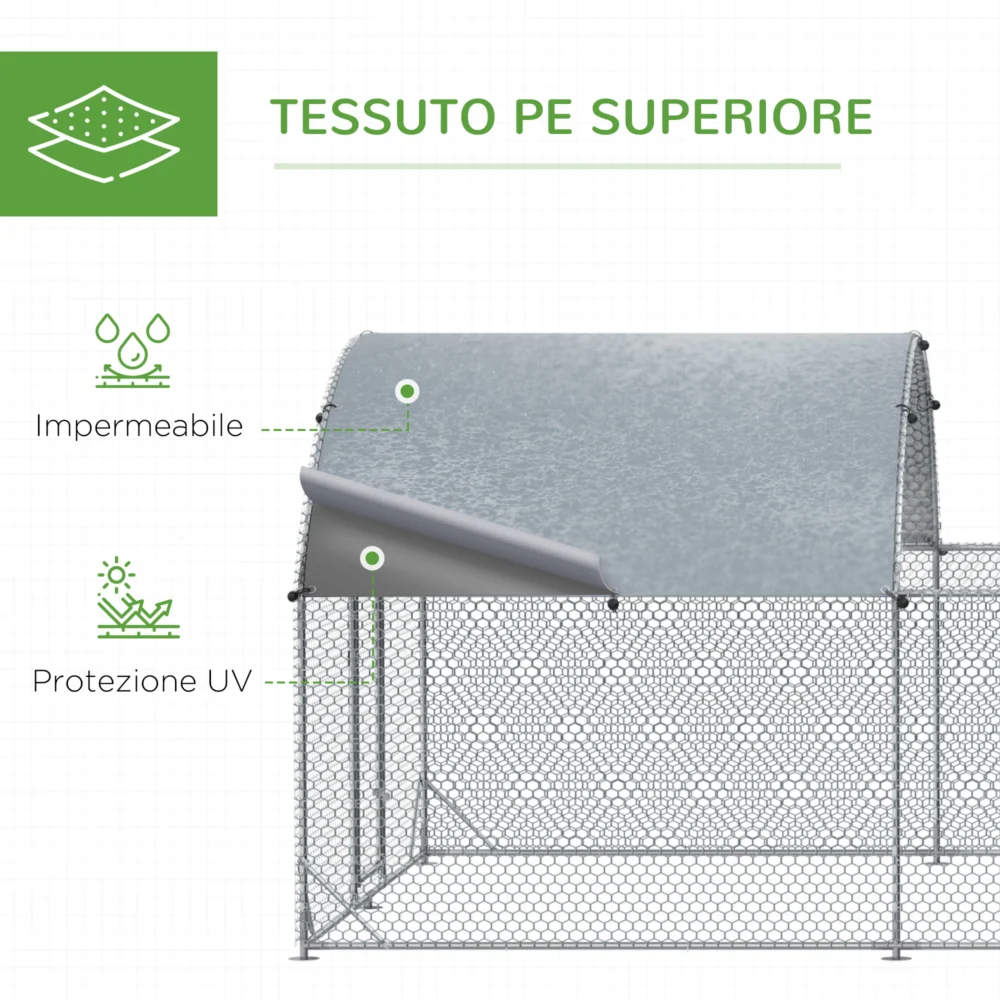 PawHut Outdoor Steel Chicken Run με κάλυμμα PE με προστασία UV, 570x280cm D51-341V00SR