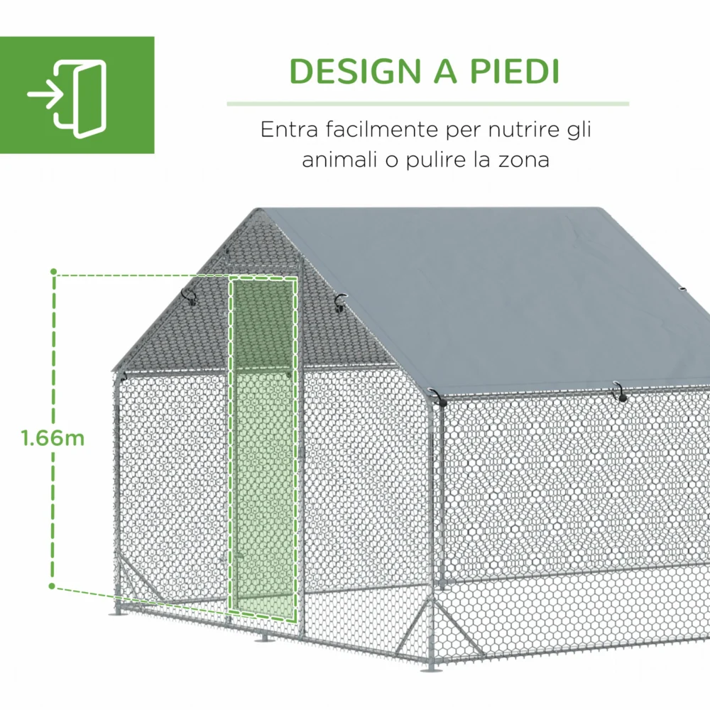 PawHut Garden κοτέτσι για 15-18 κοτόπουλα από γαλβανισμένο χάλυβα και πολυαιθυλένιο με υπόστεγο και κλειδαριά, 600x300x195 cm D51-345V00SR