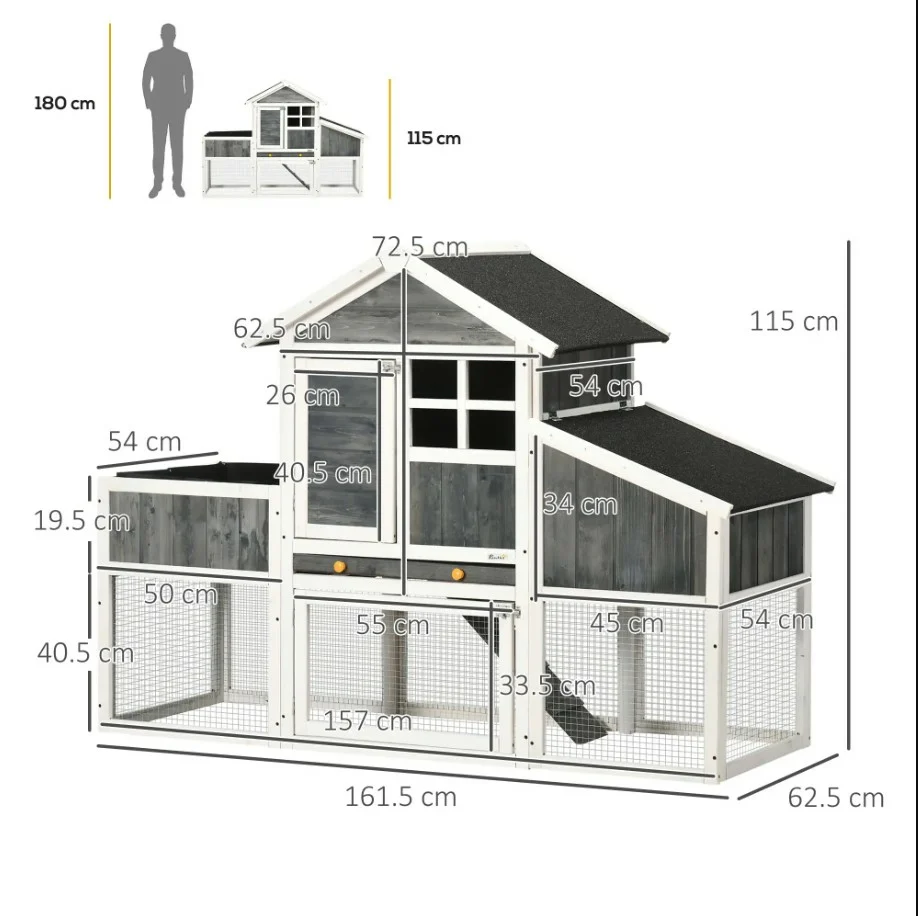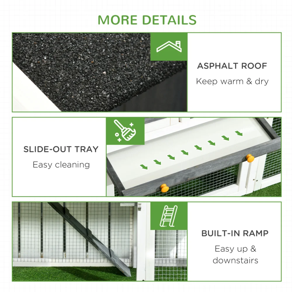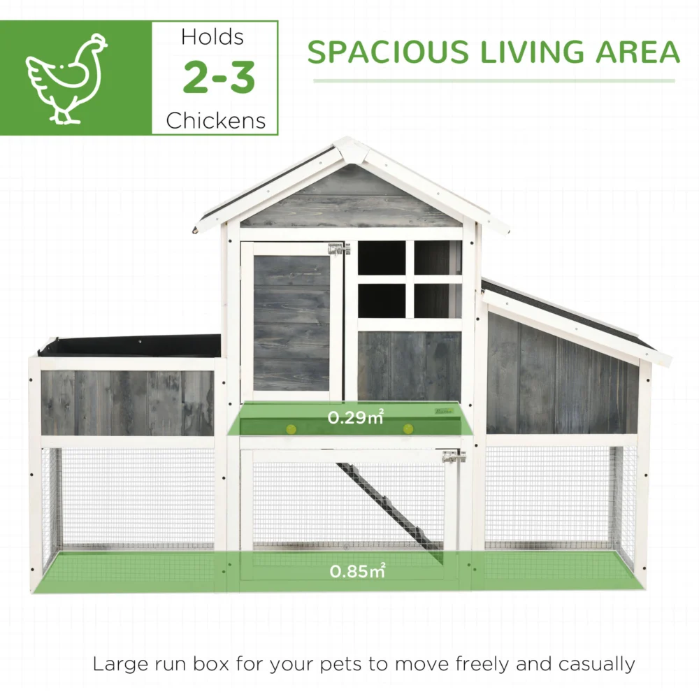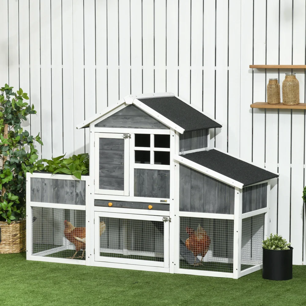 PawHut Prefab Ξύλινο κοτέτσι με ανοιχτό χώρο, κοτέτσι και φωλιά βρεφών, παρτέρι και ασφάλτινη στέγη, γκρι 161.5 x 62.5 x 115 cm D51-361V00GY