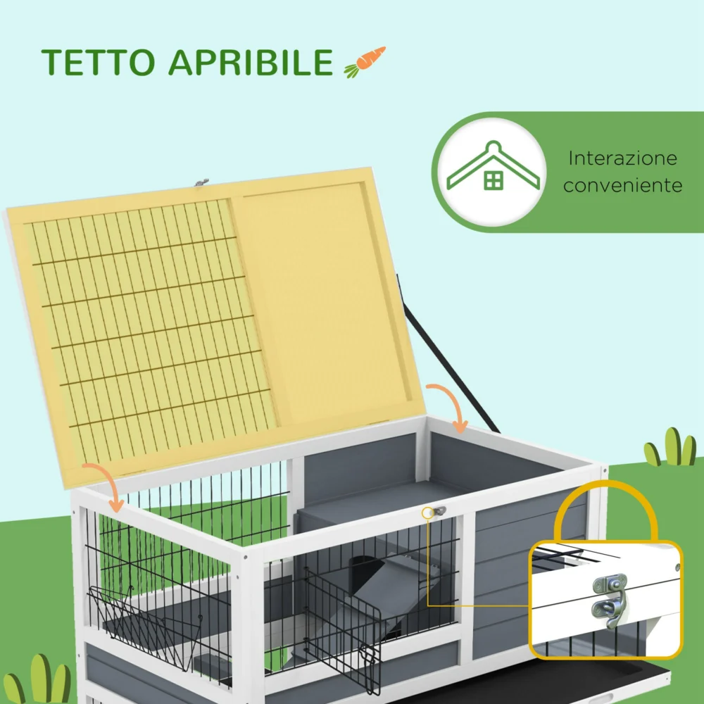 PawHut 2 επιπέδων εσωτερική ξύλινη καλύβα με ρόδες, αφαιρούμενους δίσκους και ράμπες, γκρι D51-415V00GY
