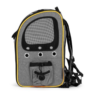 Ο σακίδιος περιλαμβάνει λουριά με επιπλέον ζώνες, μαλακή επένδυση στο κάτω μέρος και ανοιγόμενα καπάκια-εισόδους. Επιπλέον, είναι εξοπλισμένος με δίχτυ και ανοίγματα για αερισμό, καθώς και πρόσθετες τσέπες για μικροαντικείμενα. Είναι εργονομικός, εύκολος στη συντήρηση και άνετος στη χρήση. Ιδανικός για άτομα που ταξιδεύουν με τα κατοικίδιά τους.