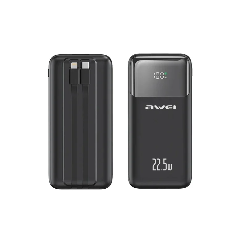 Powerbank Awei μεγάλης χωρητικότητας 10.000mah, με λειτουργία γρήγορης φόρτισης στα 22.5W και σε πρακτικό μέγεθος για εύκολη μεταφορά παντού.