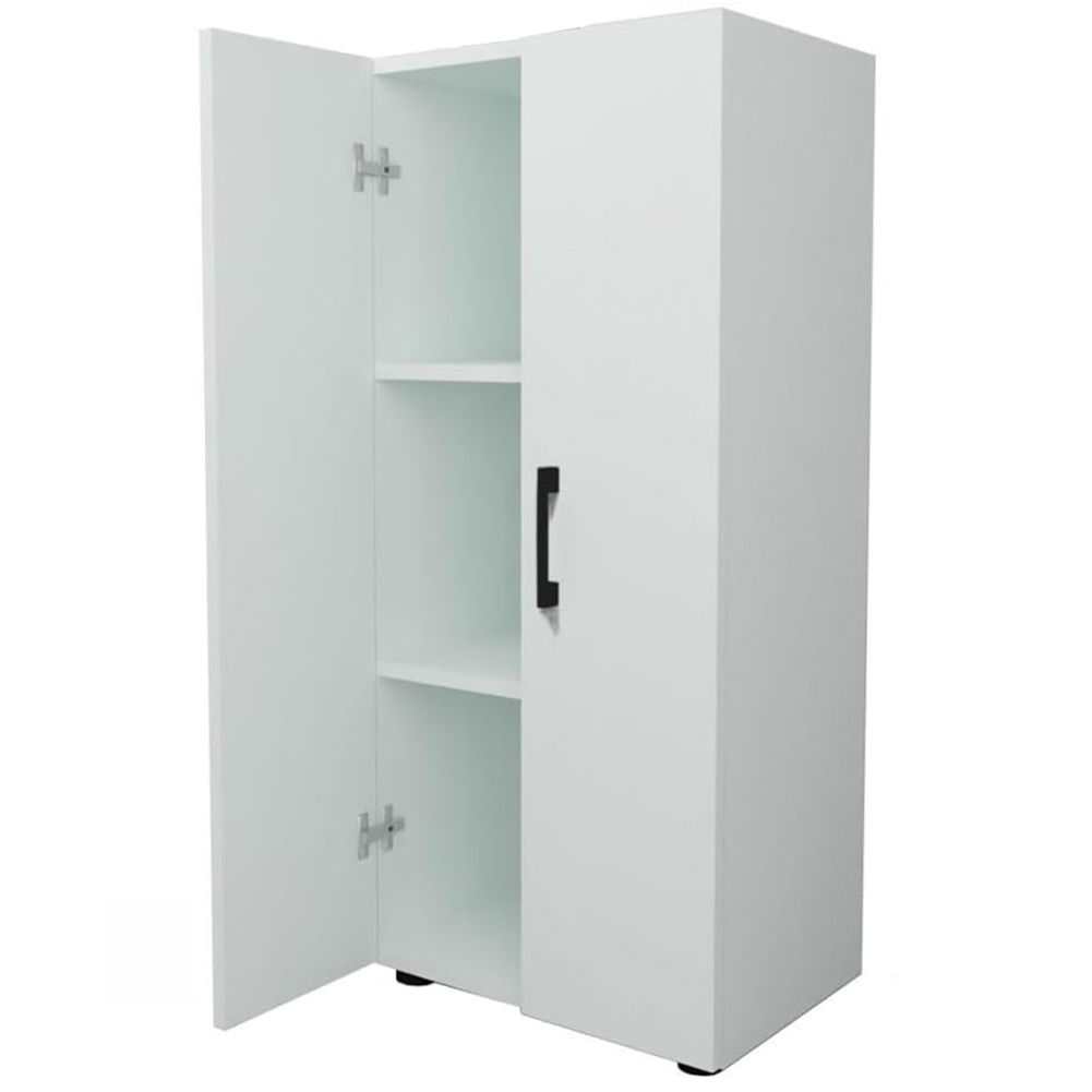 PRATIKO Πολυχρηστικό Έπιπλο με 2 Πόρτες και 3 Ράφια, Λευκό Ξύλο, Μαύρες Λαβές, 49x32x108.5εκ. 02842028