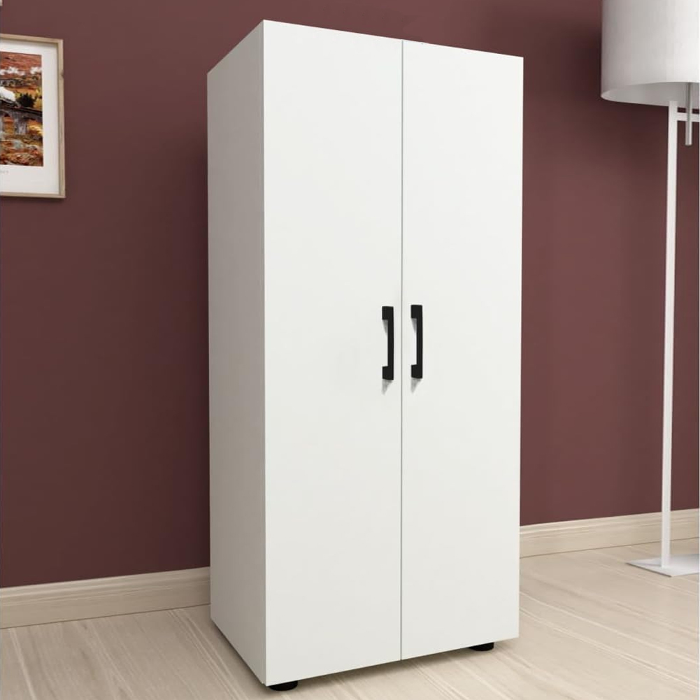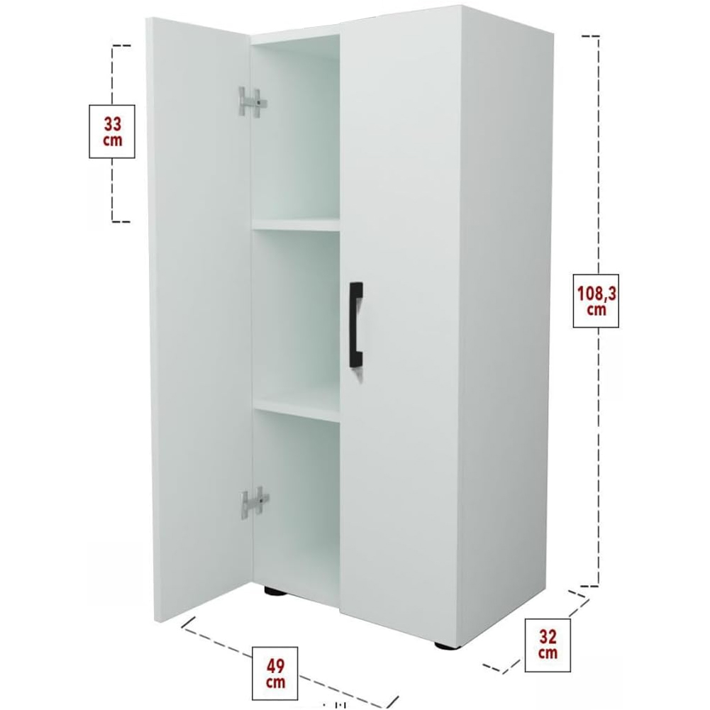 1 x Πολυχρηστικό Έπιπλο με 2 Πόρτες και 3 Ράφια σε Λευκό Ξύλο με Μαύρες Λαβές 49x32x108.5cm