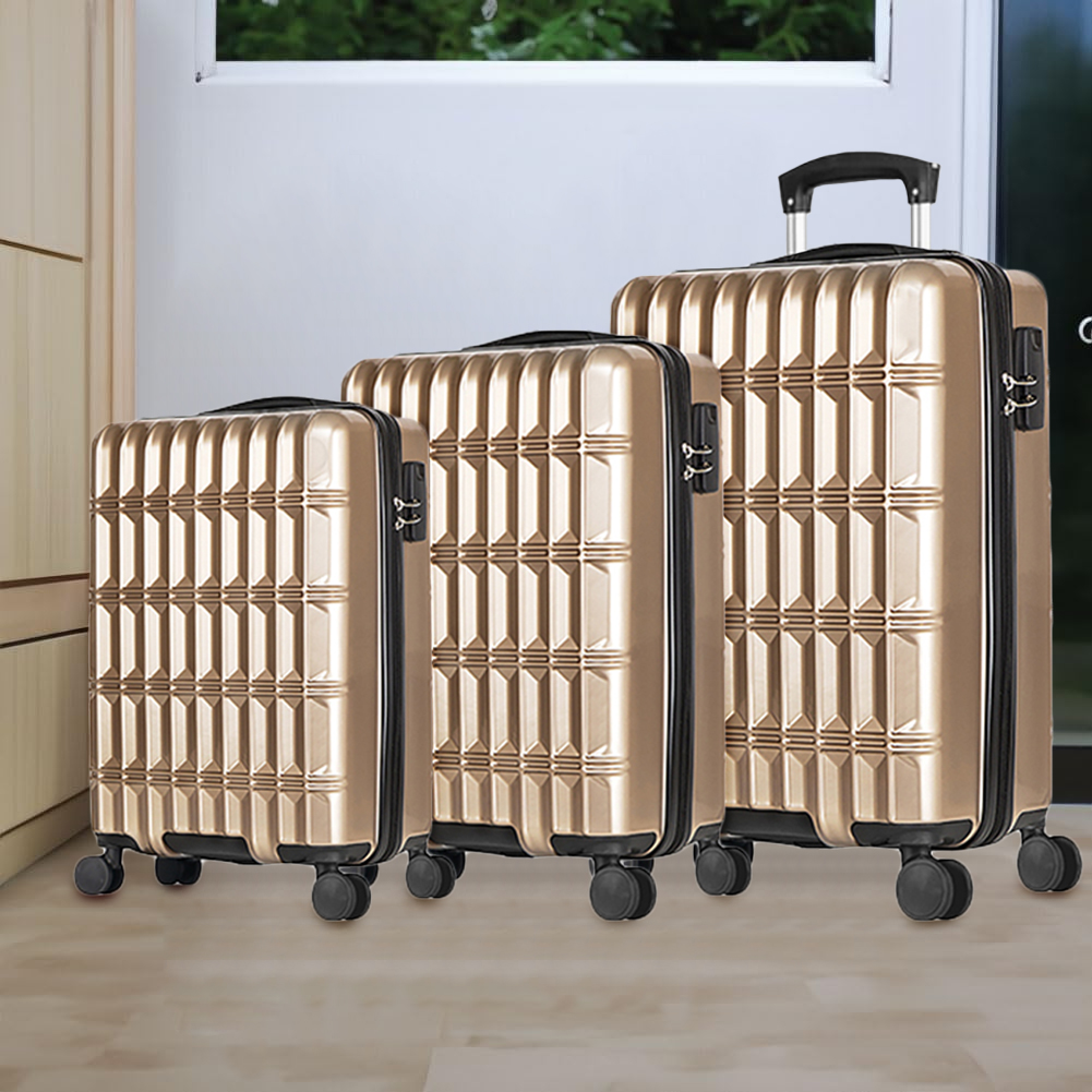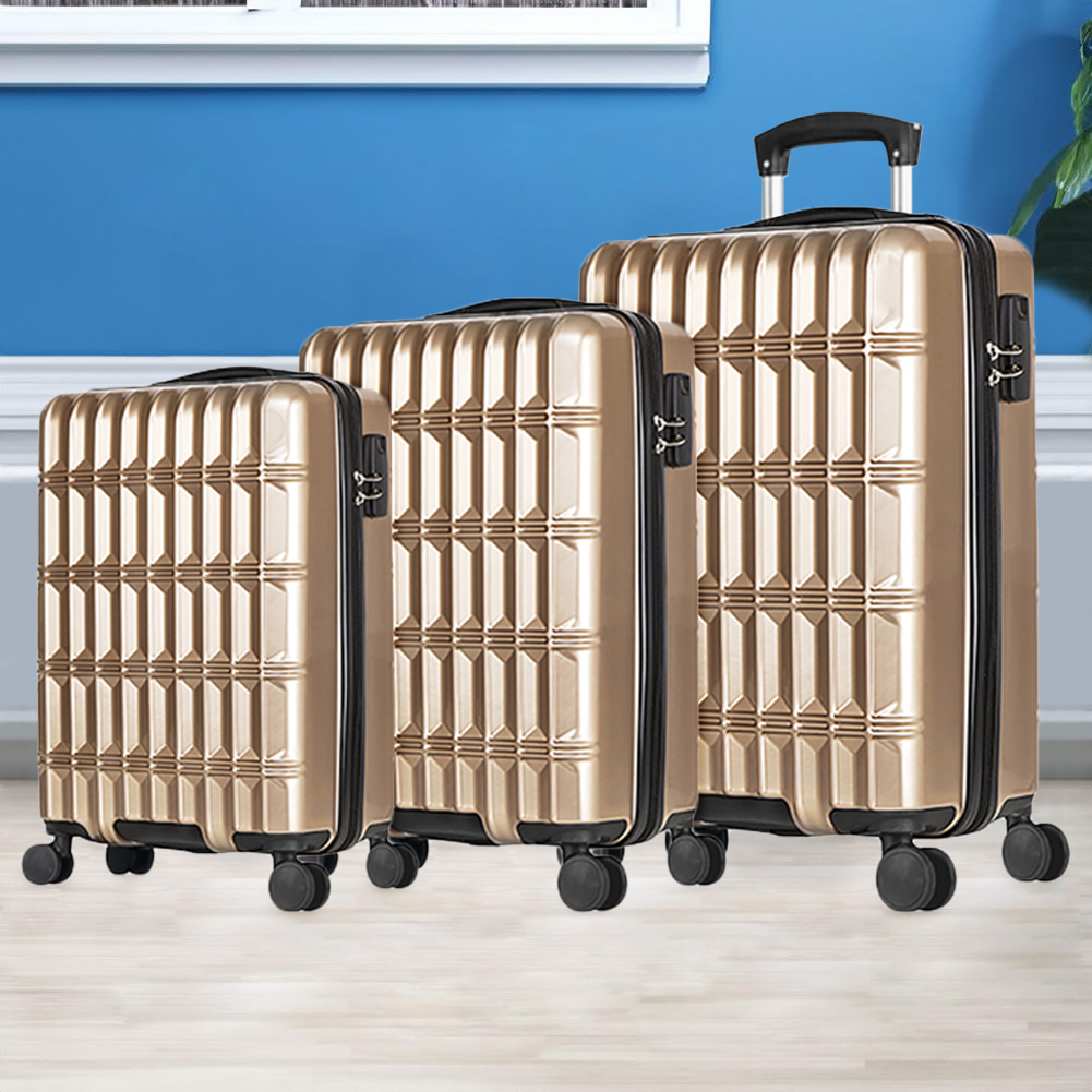 PROVITERA Σετ 3 Σκληρές Βαλίτσες Νορβηγίας με Ρόδες Easy Roll Τρόλεϊ Ταξιδιού Χρυσό 02841845