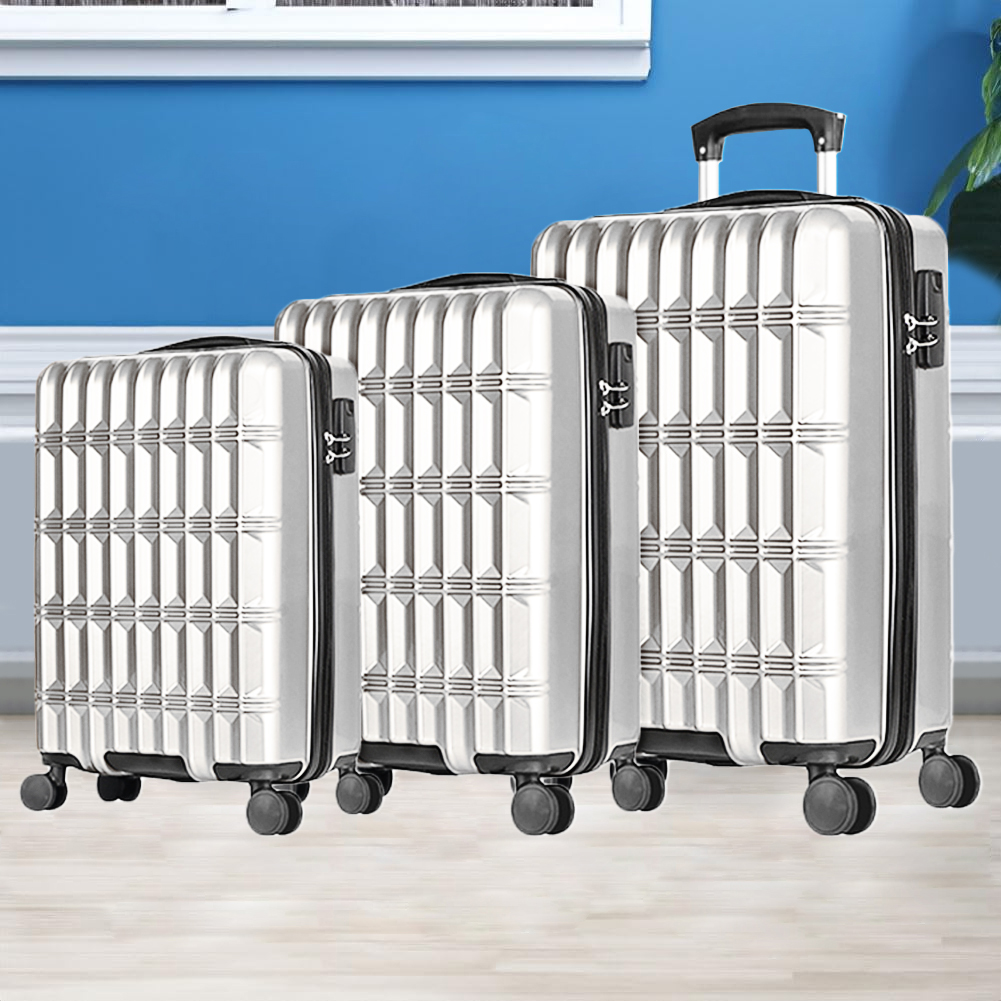 1 x Σετ 3 Σκληρών Βαλιτσών Νορβηγία με Τροχούς Easy Roll Τρόλεϊ Ταξιδιωτική Αποσκευή Λευκό