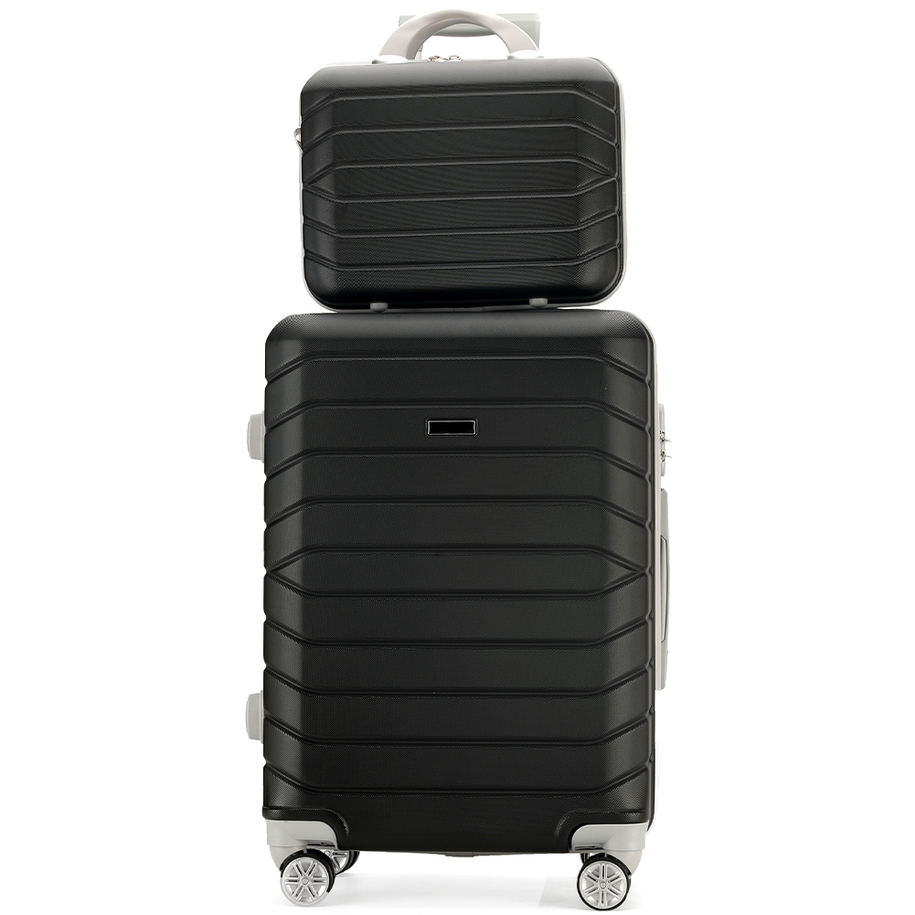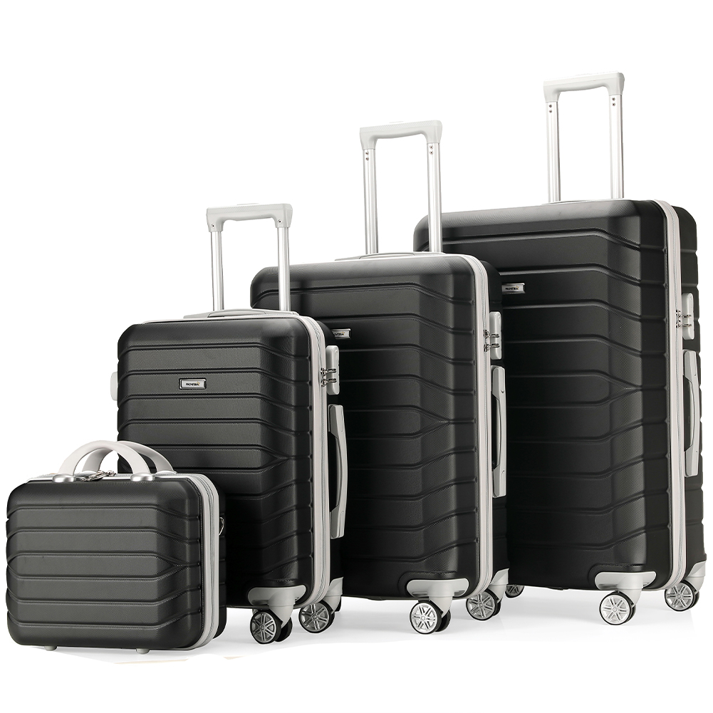 1 x Σετ 4 Σκληρών Βαλιτσών Μαύρο Trolley Αποσκευές με Beauty Case Ταξιδιού Easy Roll