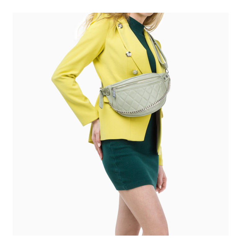 Η γυναικεία τσάντα χιαστί, από την εταιρία Puccini, είναι κατασκευασμένη από υψηλής ποιότητας οικολογικό δέρμα. Διαθέτει ρυθμιζόμενο και αποσπώμενο λουράκι, χάρη στο οποίο μπορείτε να τη φορέσετε στον ώμο ή χιαστί. Το μπροστινό μέρος του κοψίματος είναι διακοσμημένο με εντυπωσιακές ραφές και μία αλυσίδα σε ασημί χρώμα. Κλείνει με φερμουάρ, έχει μία μικρή εσωτερική τσέπη με φερμουάρ, όλα τα μεταλλικά στοιχεία είναι ασημί χρώματος, ενώ το εσωτερικό της είναι επενδεδυμένο με πολυεστερικό υλικό.