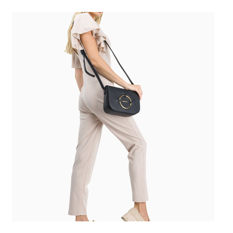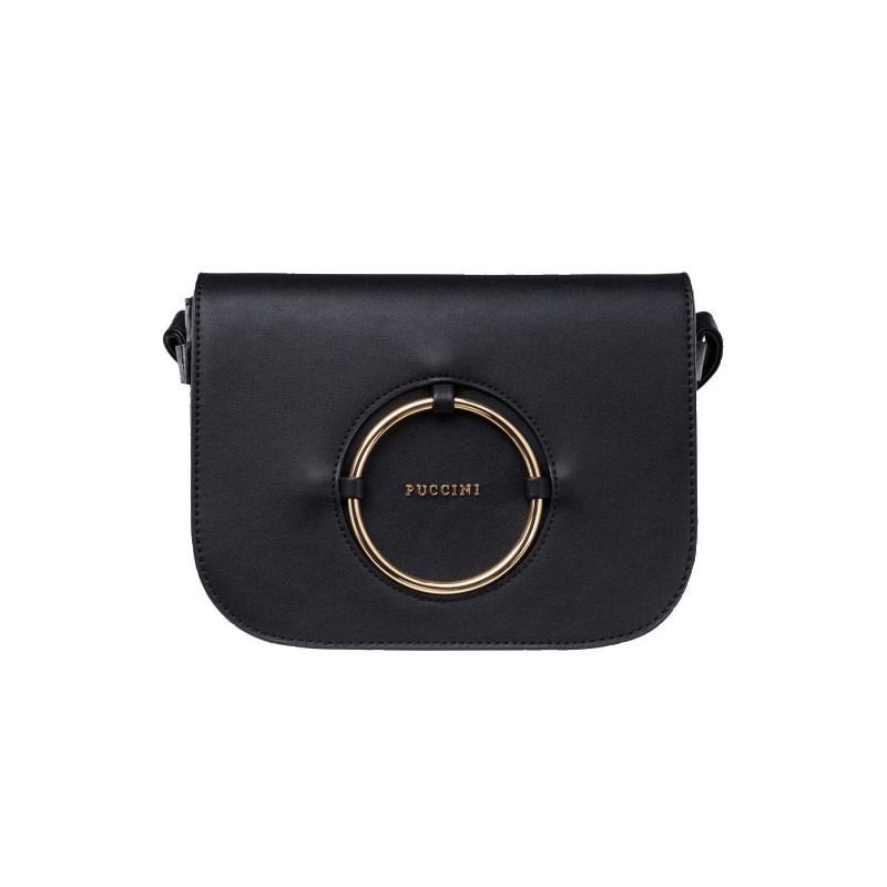 Η γυναικεία τσάντα ώμου, από την εταιρία Puccini, είναι κατασκευασμένη από υψηλής ποιότητας οικολογικό δέρμα. Διαθέτει ρυθμιζόμενο ιμάντα, χάρη στον οποίο η τσάντα μπορεί να φορεθεί ελεύθερα στον ώμο, στο αντιβράχιο ή στο χέρι. Το κομψά διακοσμημένο εσωτερικό από πολυεστέρα διαθέτει μία τσέπη με φερμουάρ και μία ανοιχτή τσέπη. Το μπροστινό μέρος της είναι διακοσμημένο με ένα διακριτικό λογότυπο της εταιρίας. Κλείνει με πτερύγιο με κομψή εφαρμογή (χρυσό κύκλο) και μαγνητικό κλείσιμο, ενώ όλα τα μεταλλικά στοιχεία είναι χρυσού χρώματος.