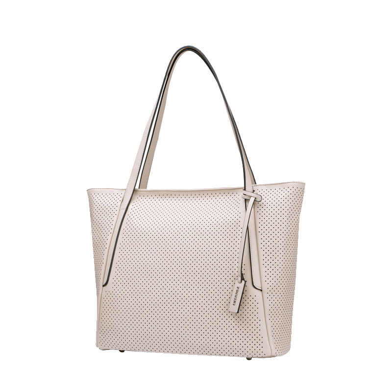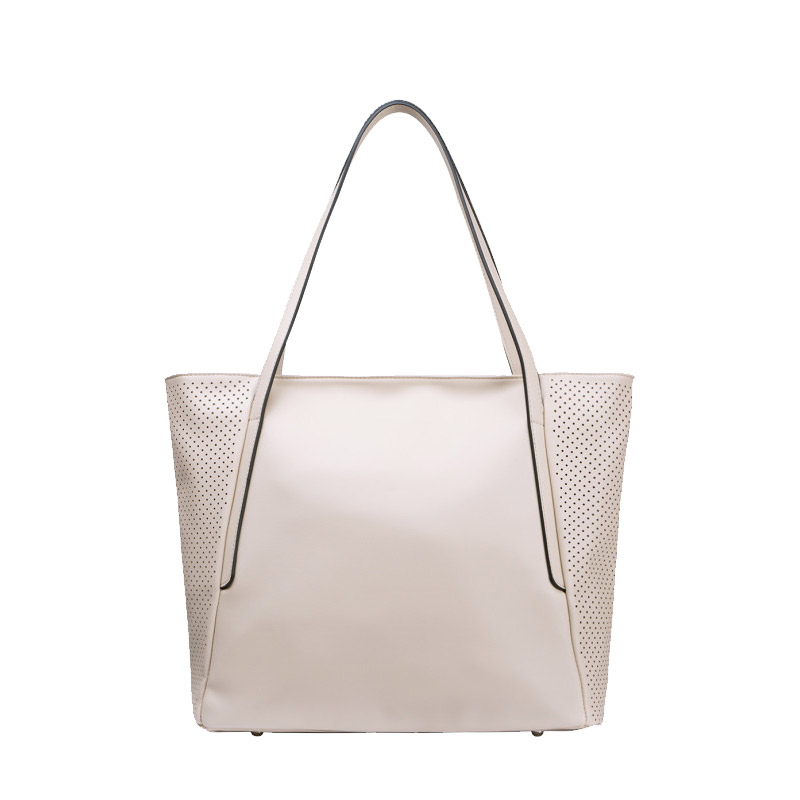 Η γυναικεία τσάντα χειρός, από την εταιρία Puccini, είναι κατασκευασμένη από οικολογικό δέρμα. Διαθέτει λαβές βέλτιστου μήκους, χάρη στις οποίες μπορεί να φορεθεί στον ώμο ή στον πήχη. Το μπροστινό μέρος της τσάντας είναι διακοσμημένο με διάτρητη υφή και ένα διακοσμητικό μενταγιόν από οικολογικό δέρμα. Επιπλέον, στο εσωτερικό θα βρείτε δύο ανοιχτές τσέπες και μία με φερμουάρ. Όλα τα μεταλλικά στοιχεία έχουν ασημί χρώμα, ενώ το εσωτερικό της τσάντας είναι επενδεδυμένο με πολυεστέρα.
